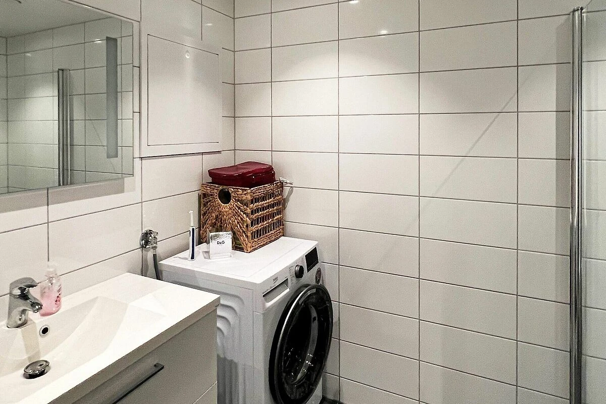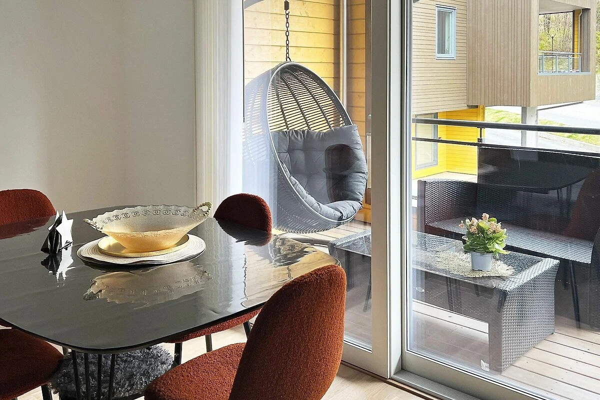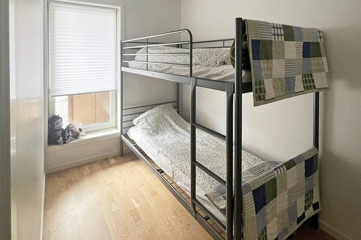 Offene Küche(Kochherd(elektrisch), Dunstabzugshaube, Kaffeemaschine(Filter), Waffeleisen, Spülmaschine, Kühlschrank, Tiefkühlschrank(1-59L), Waschmaschine), Wohn-/Schlafzimmer(25 m2)(TV(norwegische Fernsehsender), Netflix), Schlafzimmer(Doppelbett, Kinderbett), Schlafzimmer(2x Etagenbett), Badezimmer(Fußbodenheizung)(Badewanne oder Dusche, Waschbecken, Toilette), Heizung(Zentral), Terrasse(überdacht, 11 m2), Garten, Gartenmöbel, Parkplatz