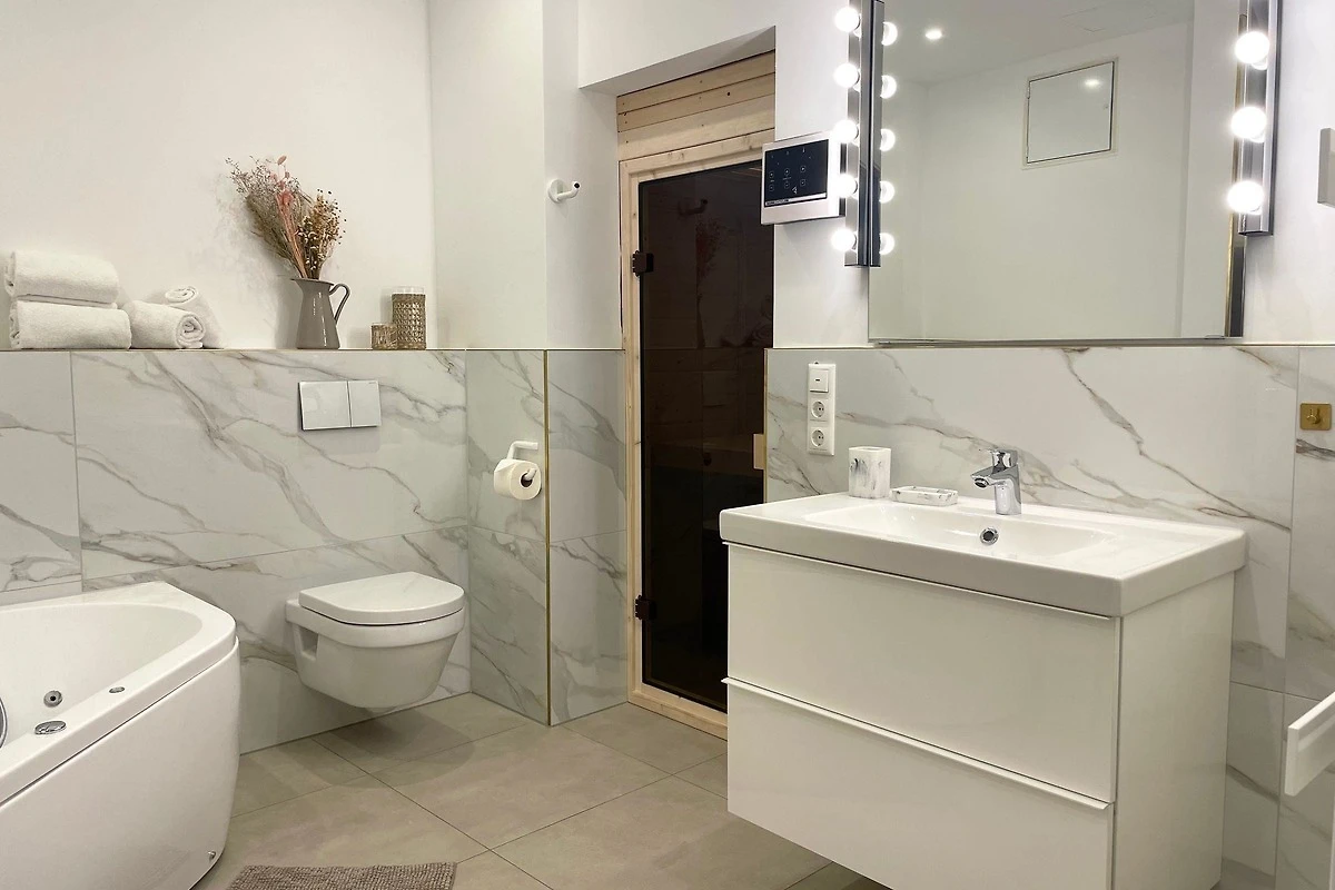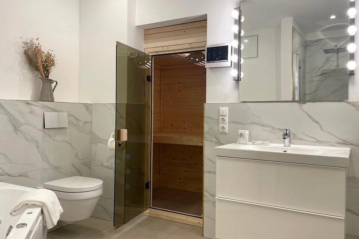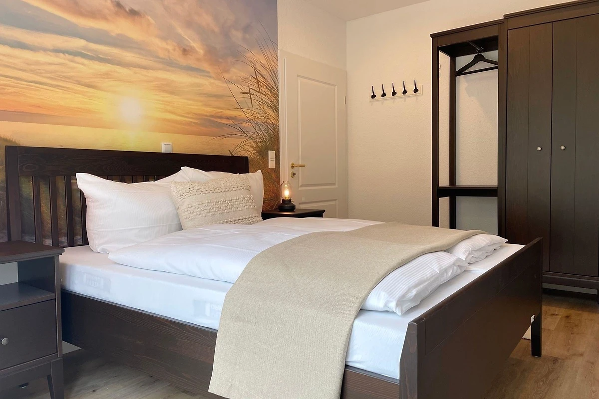 Im „Haus Nordseebrandung FeWo 4“ erwartet die Gäste eine stilvoll eingerichtete Ferienwohnung auf 90 m², die bis zu 6 Personen Platz bietet. Zwei gemütliche Schlafzimmer sind mit hochwertigen Betten ausgestattet und garantieren erholsame Nächte. Das Wohnzimmer mit einem komfortablen Schlafsofa lädt zum Entspannen ein, unterstützt durch drei Fernseher und WLAN. Die offene, voll ausgestattete Küche ermöglicht die Zubereitung von Lieblingsgerichten und bietet einen Essbereich für gesellige Abende. Die Wellness-Ausstattung umfasst eine private Sauna und eine Whirlpool-Badewanne, während zwei moderne Badezimmer mit bodengleicher Dusche und Badewanne zusätzlichen Komfort bieten. Die Wohnung ist ideal für einen entspannenden Urlaub an der Nordsee und verbindet Komfort mit einer einladenden Atmosphäre.