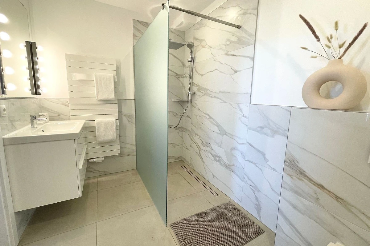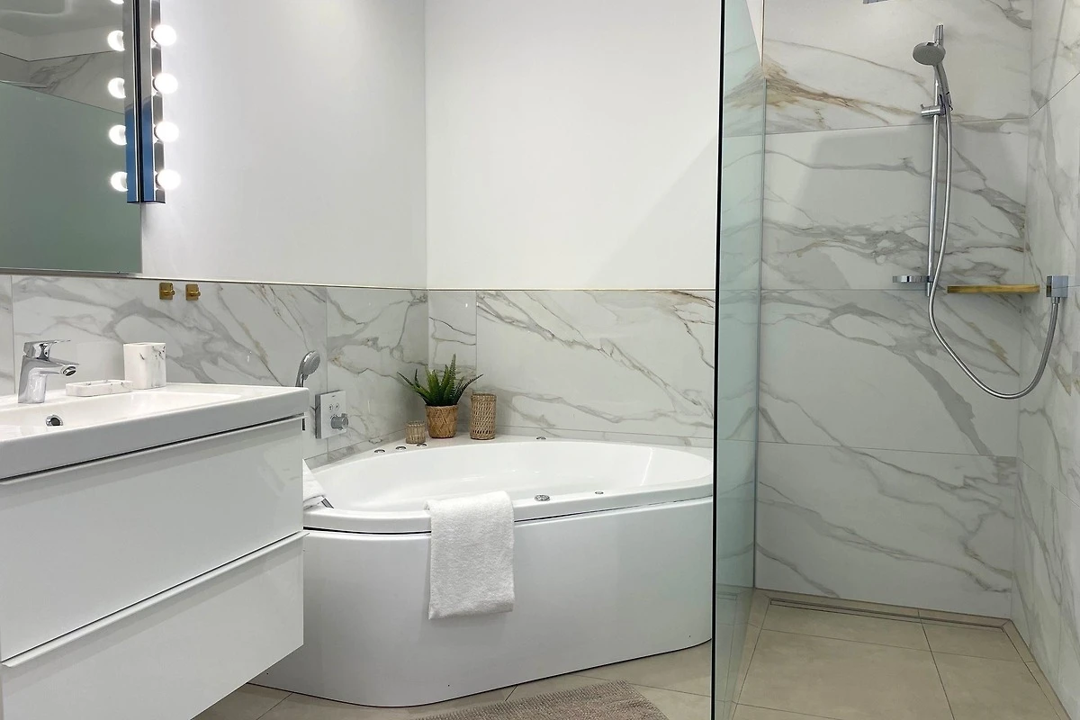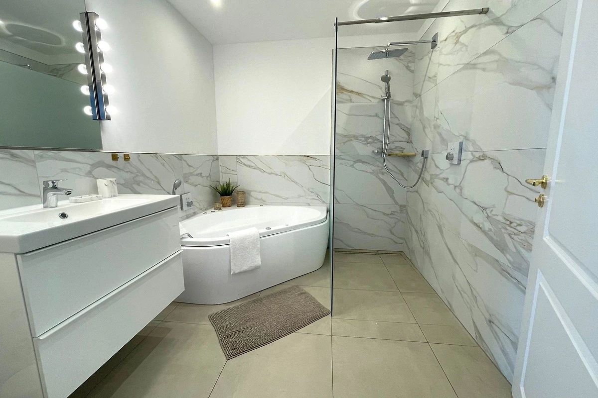 Die Ferienwohnung bietet ein barrierefreies Ambiente, das komfortables Wohnen für alle gewährleistet. Ein stilvoller Whirlpool lädt zur Entspannung nach einem erlebnisreichen Tag ein. Die moderne Einrichtung und grosszügigen Räume schaffen eine einladende Atmosphäre. Ideal für erholsame Aufenthalte in einer ruhigen Umgebung, in der Erholung und Bequemlichkeit im Vordergrund stehen.
