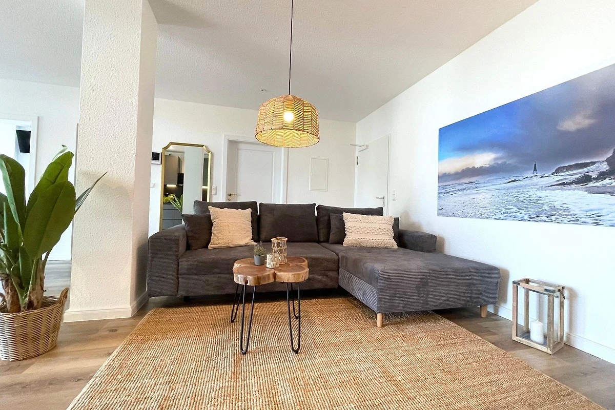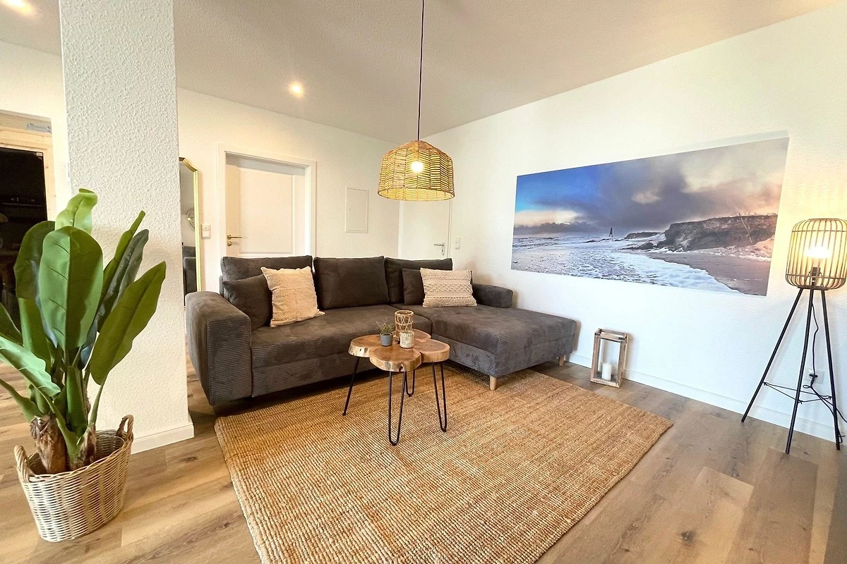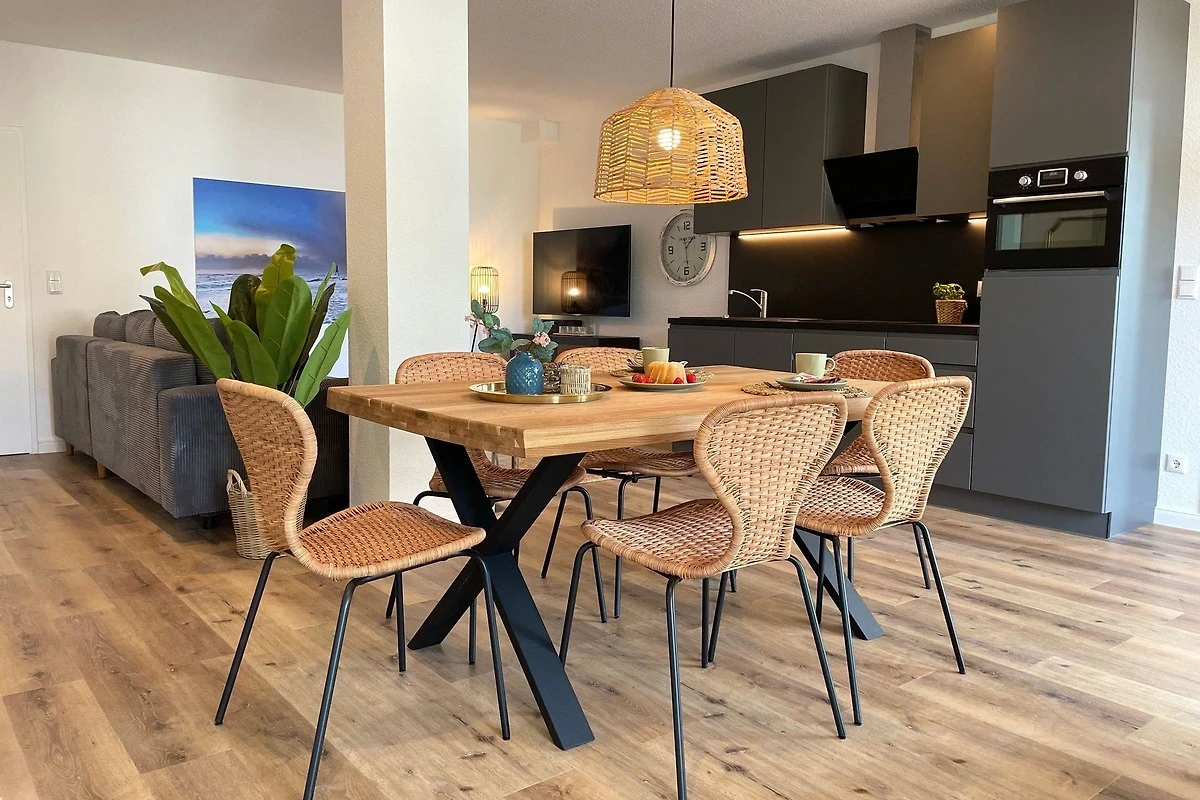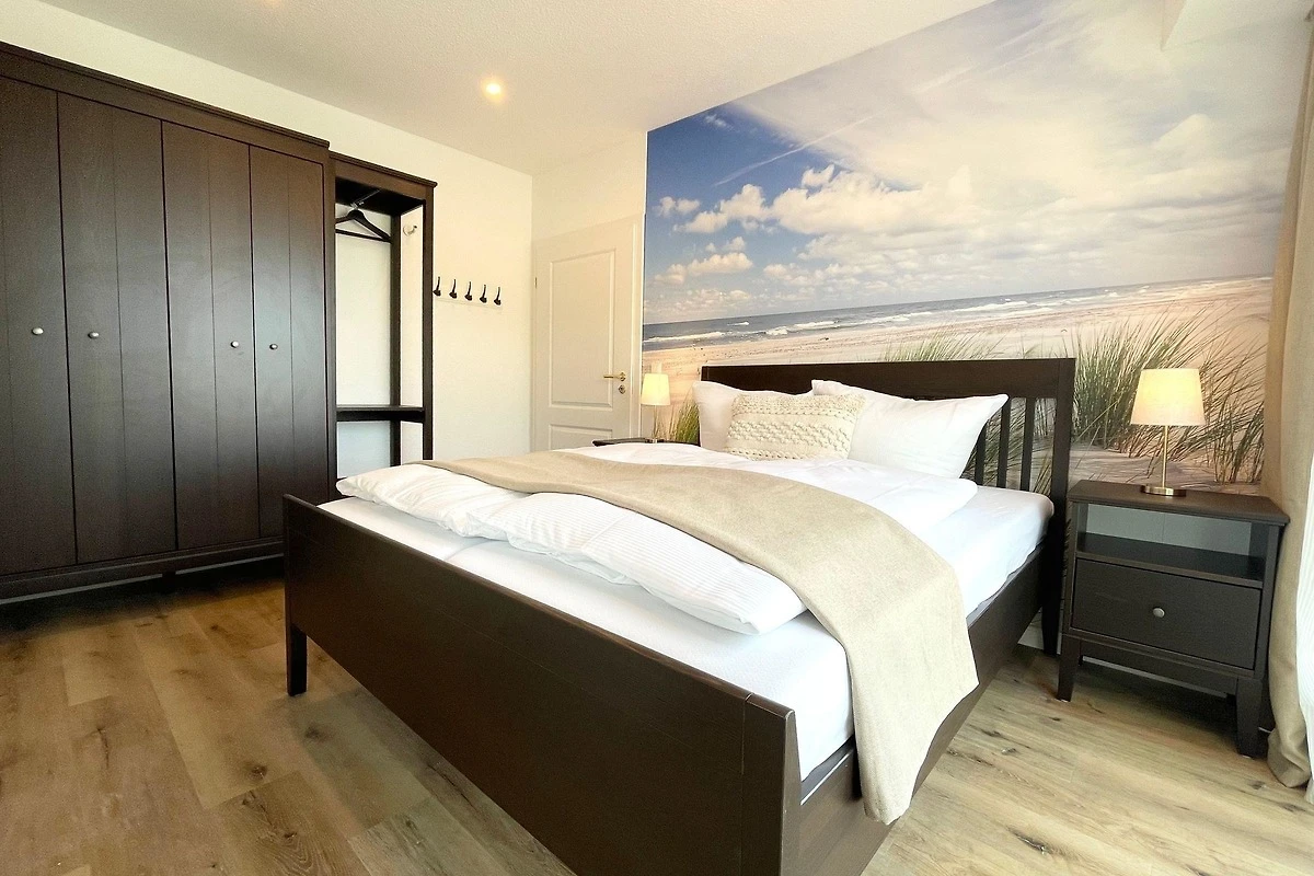 Die exquisite Strandferienwohnung im Erdgeschoss bietet Platz für bis zu sechs Personen und vereint Luxus mit Komfort. Sie verfügt über zwei gemütliche Schlafzimmer, ein Schlafsofa und zwei moderne Badezimmer, die den Aufenthalt angenehm gestalten. Die voll ausgestattete Küche lädt dazu ein, kulinarische Köstlichkeiten zuzubereiten; eine Spülmaschine erleichtert das Aufräumen. Zur allgemeinen Verfügung stehen Waschmaschinen und Trockner im Haus. Ein besonderes Highlight ist die private Sauna und die Whirlpool-Badewanne, ideal zum Entspannen nach einem Tag am Strand. Angrenzend zur Wohnung befindet sich ein ruhiger Wald, der zu Erkundungen einlädt. Saisonbedingt findet man einen Bäcker im Haus, der frische Backwaren anbietet. Diese Ferienwohnung kombiniert erstklassige Lage und luxuriöse Annehmlichkeiten, um ein unvergessliches Urlaubserlebnis zu bieten.