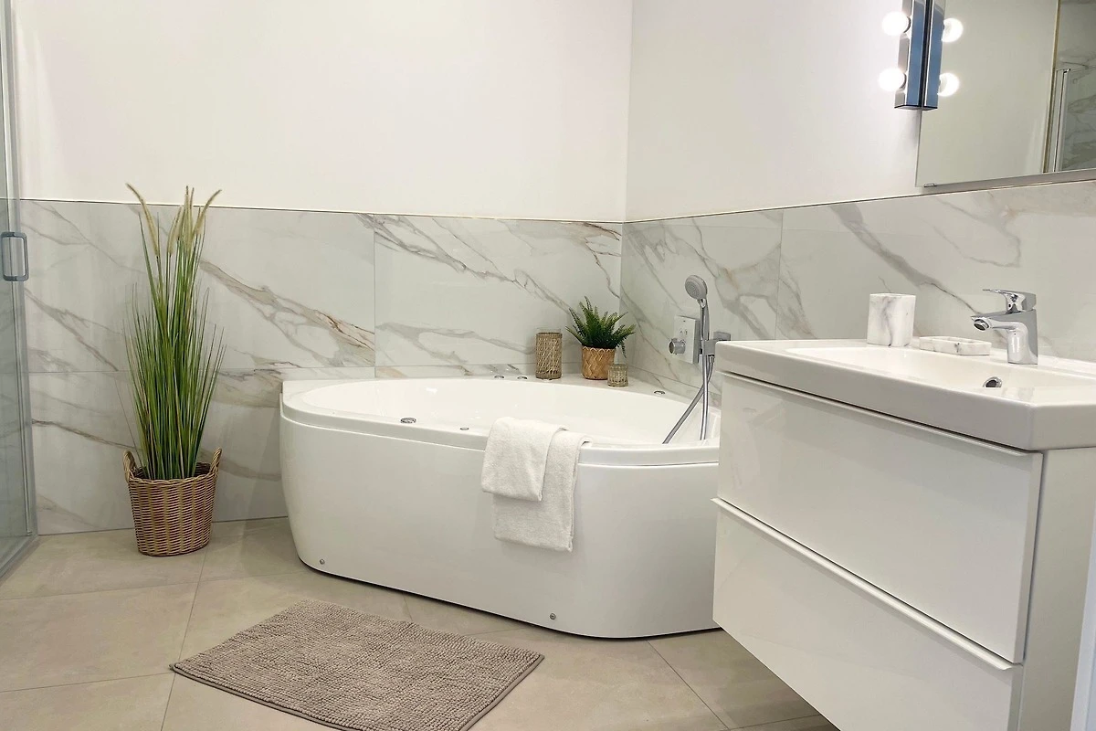 In dieser luxuriösen Ferienwohnung im Erdgeschoss finden bis zu 4 Personen Platz. Ein separates Schlafzimmer sorgt für Privatsphäre, während ein Schlafsofa im Wohnzimmer zusätzliche Schlafmöglichkeiten bietet. Die Küche ist modern und bestens ausgestattet, um köstliche Mahlzeiten zuzubereiten. Hervorzuheben sind die Sauna und die Whirlpoolbadewanne, die ideal für Entspannung nach einem Strandtag sind.