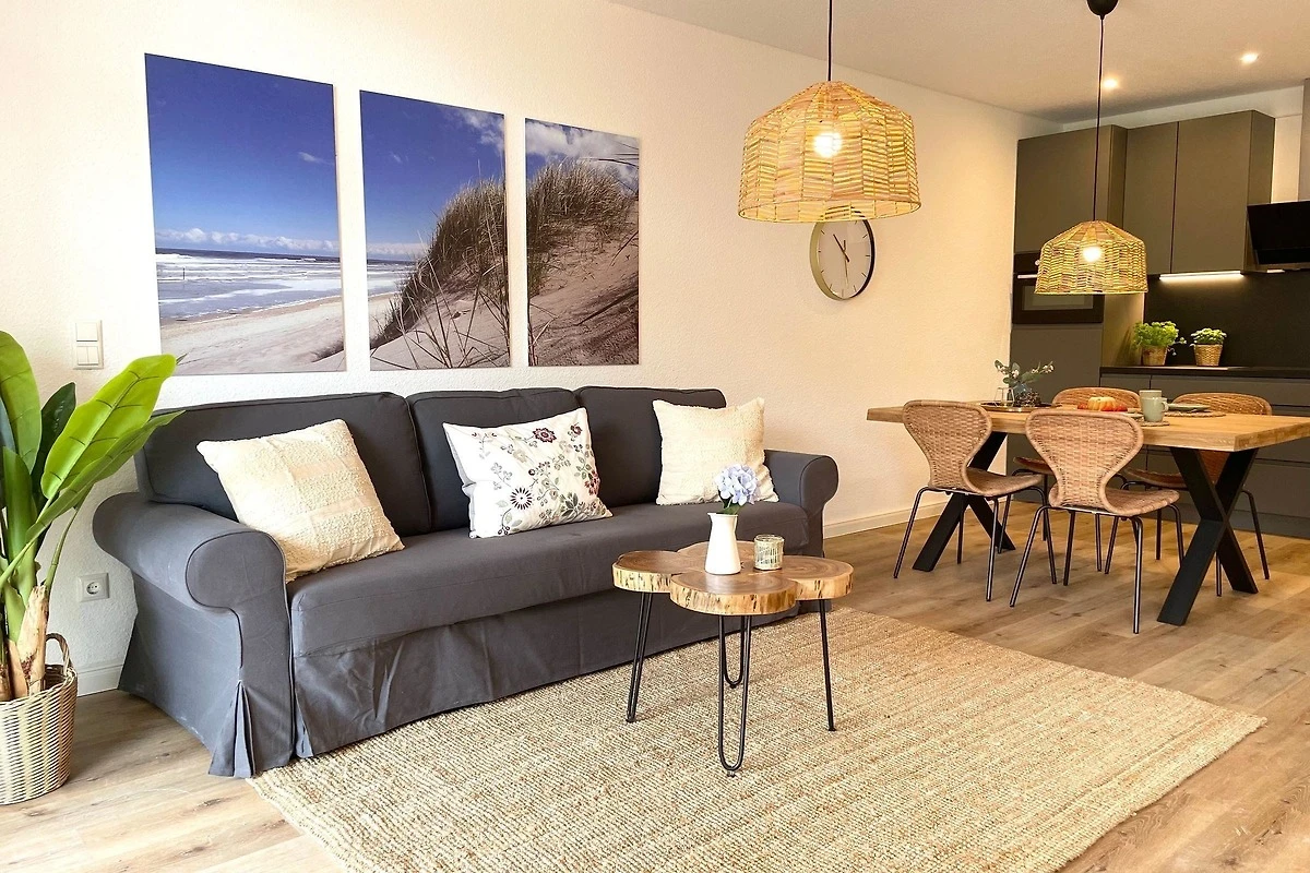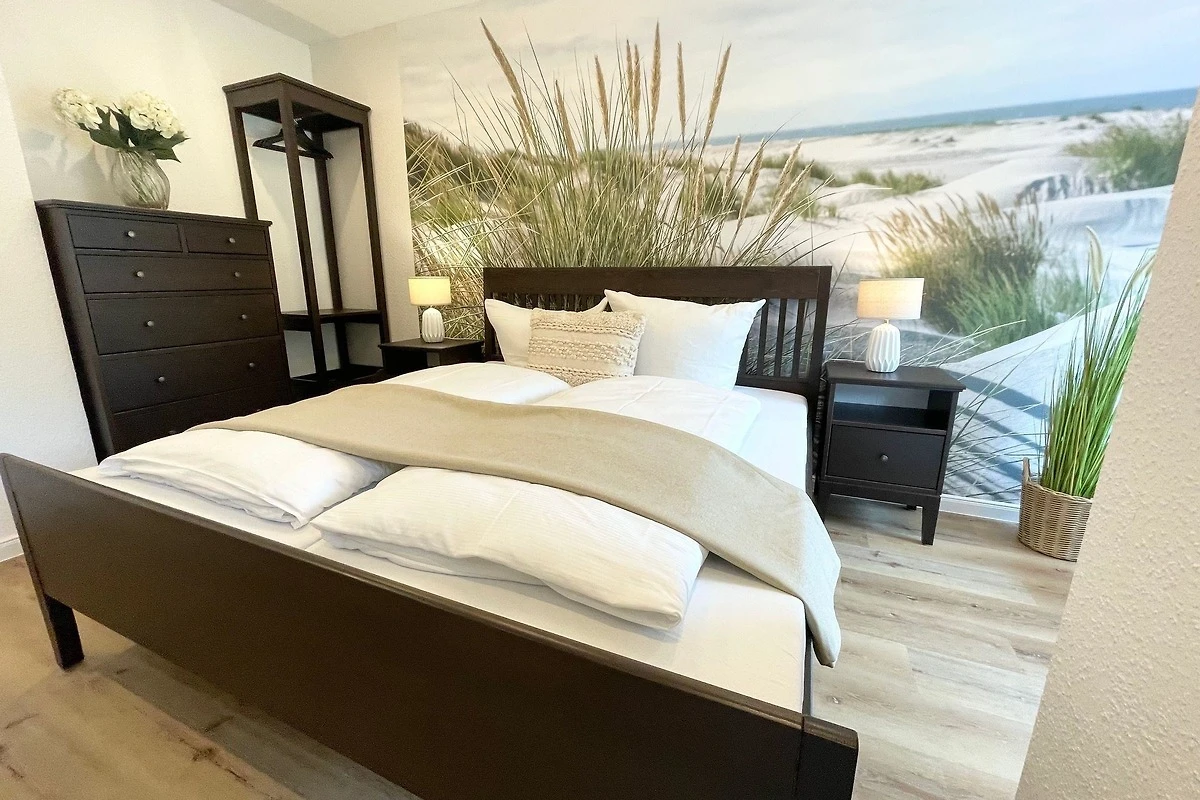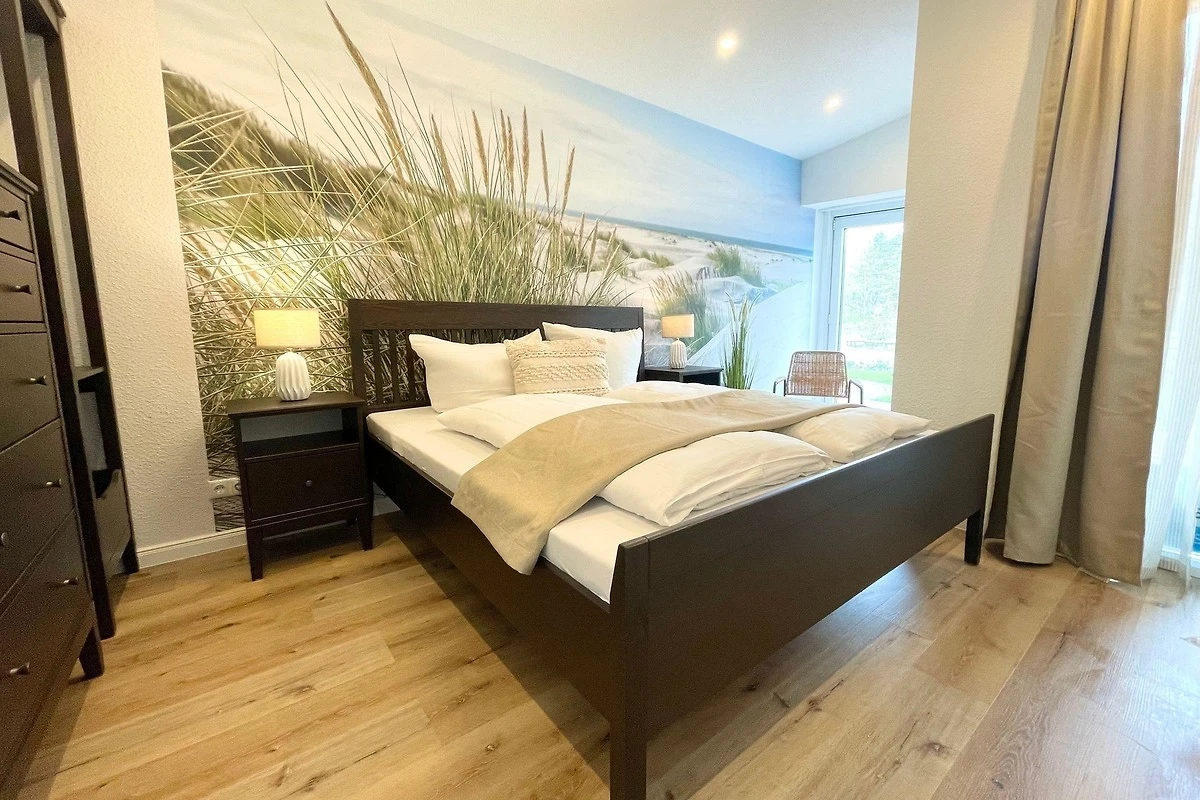 Gemeinschaftlich nutzbare Waschmaschinen und Trockner stehen im Haus zur Verfügung, ebenso wie ein sicherer Fahrradraum für die Unterbringung der Räder. Die Wohnung ist neu und bietet sämtlichen modernen Komfort für einen angenehmen Aufenthalt. Vorhänge sorgen für die nötige Privatsphäre, während saisonal ein Bäcker im Haus frische Brötchen anbietet. Geniessen Sie unvergessliche Erlebnisse in dieser traumhaften Unterkunft in strandnaher Lage!