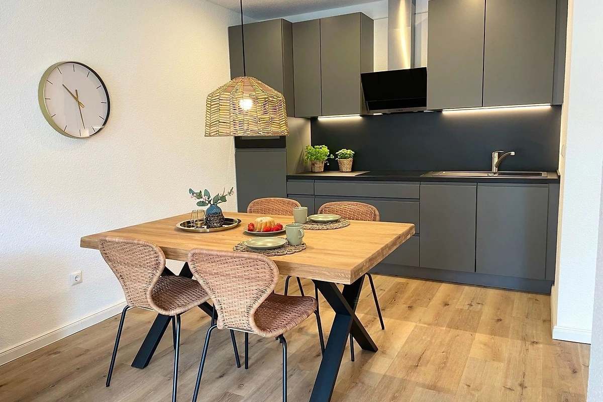 Zusätzlich stehen im Haus Waschmaschinen und Trockner zur gemeinschaftlichen Nutzung bereit, während Fahrräder sicher im Fahrradraum abgestellt werden können. Ein saisonal geöffneter Bäcker im Haus sorgt dafür, dass frische Brötchen und weitere Köstlichkeiten stets griffbereit sind. Die Wohnung garantiert somit eine gelungene Kombination aus Erholung und Aktivitäten im Freien für bis zu 4 Personen.