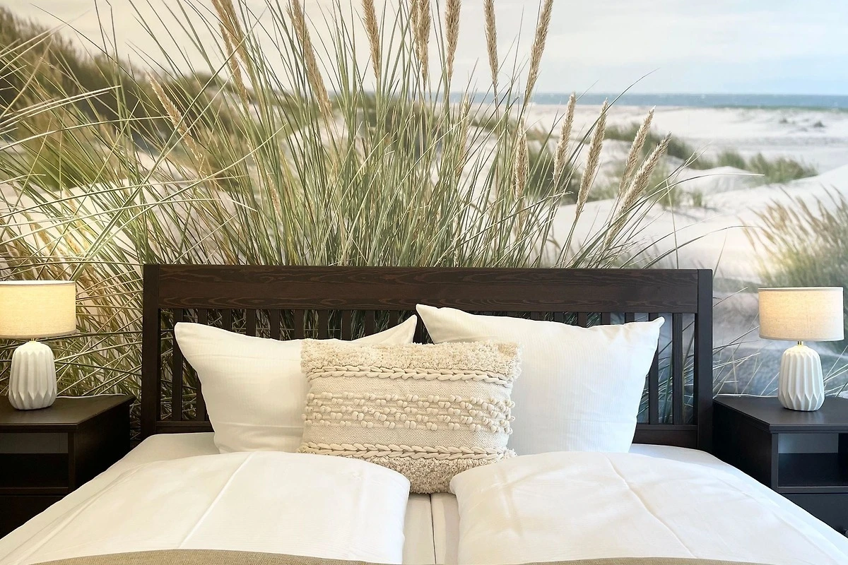 Die Ferienwohnung befindet sich in einer traumhaften, strandnahen Lage, nur 200 Meter entfernt vom Sandstrand, der zu entspannten Spaziergängen und erfrischenden Badeausflügen einlädt. Direkt gegenüber erstreckt sich ein ruhiger Wald, ideal für erholsame Spaziergänge oder kleine Wanderungen. Die Unterkunft bietet einfachen Zugang zu zahlreichen Attraktionen in der Umgebung, darunter malerische Küstenpfade und lokale Restaurants. Saisonbedingt findet sich ein Bäcker im Haus, der frische Brötchen für das Frühstück bereitstellt. Die Anreise erfolgt bequem, mit ausreichend Parkmöglichkeiten in der Nähe. In der Wohnung selbst stehen Waschmaschinen, Trockner und ein sicherer Fahrradraum zur Verfügung. Geniessen Sie den modernen Komfort dieser exklusiven Unterkunft und die Vielzahl an Freizeitmöglichkeiten in unmittelbarer Nähe.
