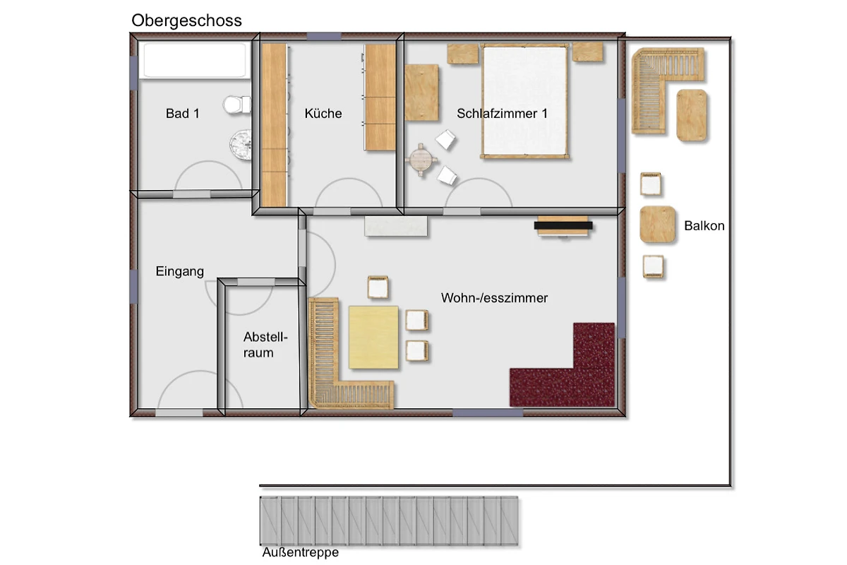 Unser Ferienhaus liegt nicht mitten im Wald, aber am Waldrand mit wunder vollem Blick auf unser Dorf. Da es der Südhang ist, haben sie hier bis in die Abendstunden Sonne. Sie können die Terrasse zum ausruhen, sonnen grillen, essen, Kaffeetrinken nutzen, oder einfach Ausschau halten.