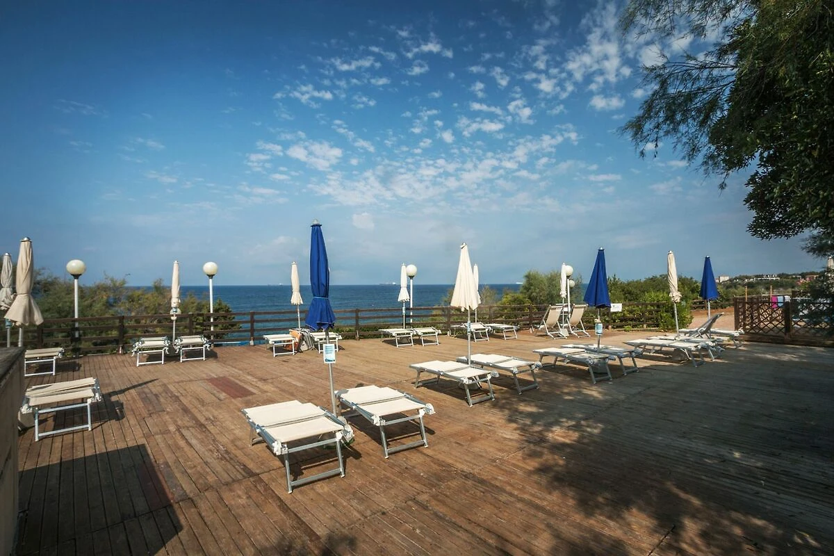 Das Feriendorf Miramare befindet sich auf einem Felsen direkt am Meer, das Meer kann über eien kurze Treppe erreichbar werden. Am Strand, welcher aus kleiner Felsen und eindrucksvoller Riffe besteht, ist ein Bademeister immer anwesend und sorgt für Sicherheit. Sonnenliegen und Sonnenschirme können gemietet werden.