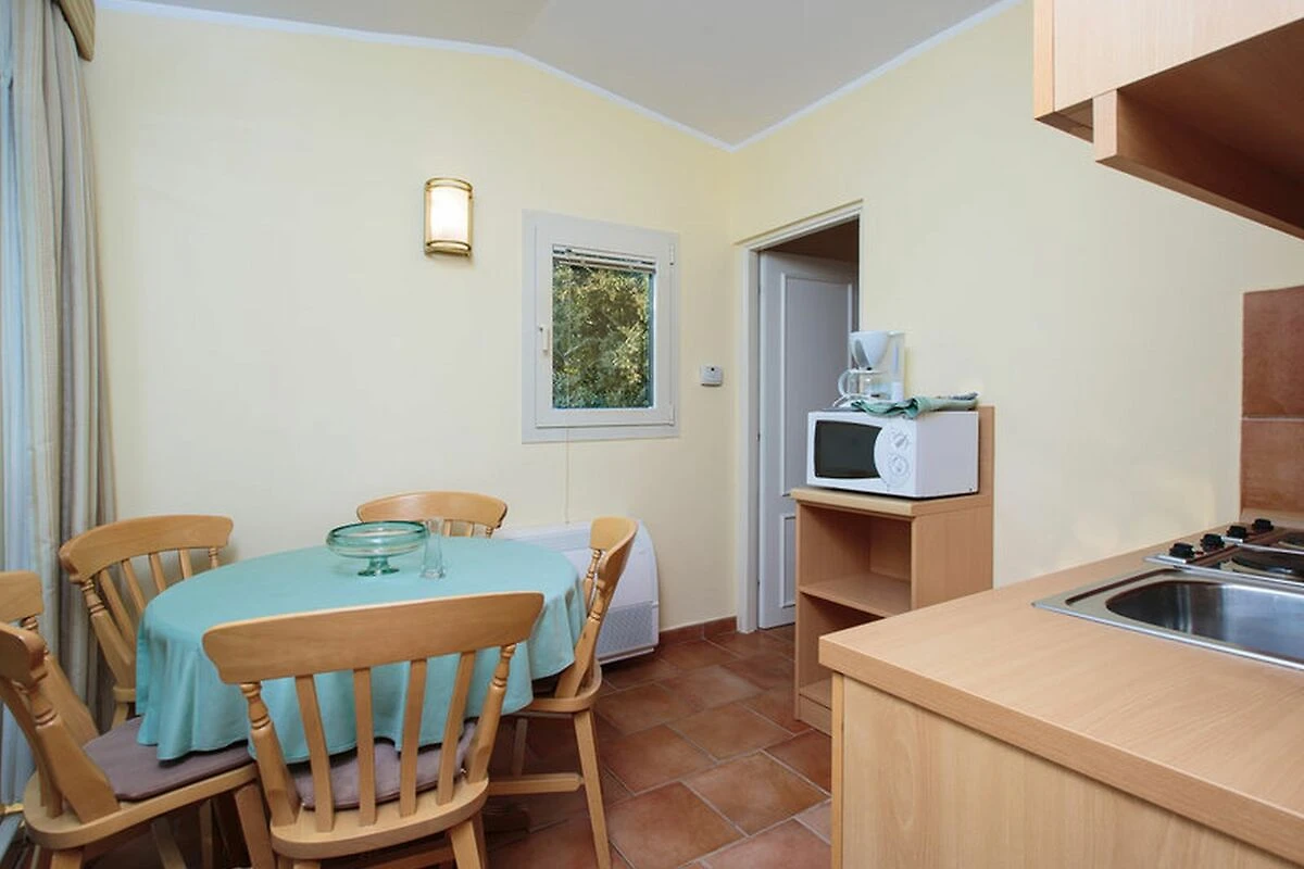 Die Unterkunft verfügt über eine gut eingerichtete Küche mit Herd, Geschirr, Besteck, Töpfen, einer Mikrowelle, einer Kaffeemaschine sowie einem Kühlschrank mit Eisfach. Falls Sie sich im Urlaub lieber bekochen lassen, können Sie die lokale und internationale Küche sowie leckere Fisch Spezialitäten in einem der Restaurants der Anlage geniessen. Sie können selbstverständlich auch von der Halbpension zu vorteilhaften Konditionen Gebrauch machen (kann vor Ort dazu gebucht werden, es ist keine Voranmeldung notwendig). In wenigen Minuten erreichen Sie auch das wunderschöne Städtchen Poreč, wo Sie viele weitere Restaurants zum Ausprobieren finden.