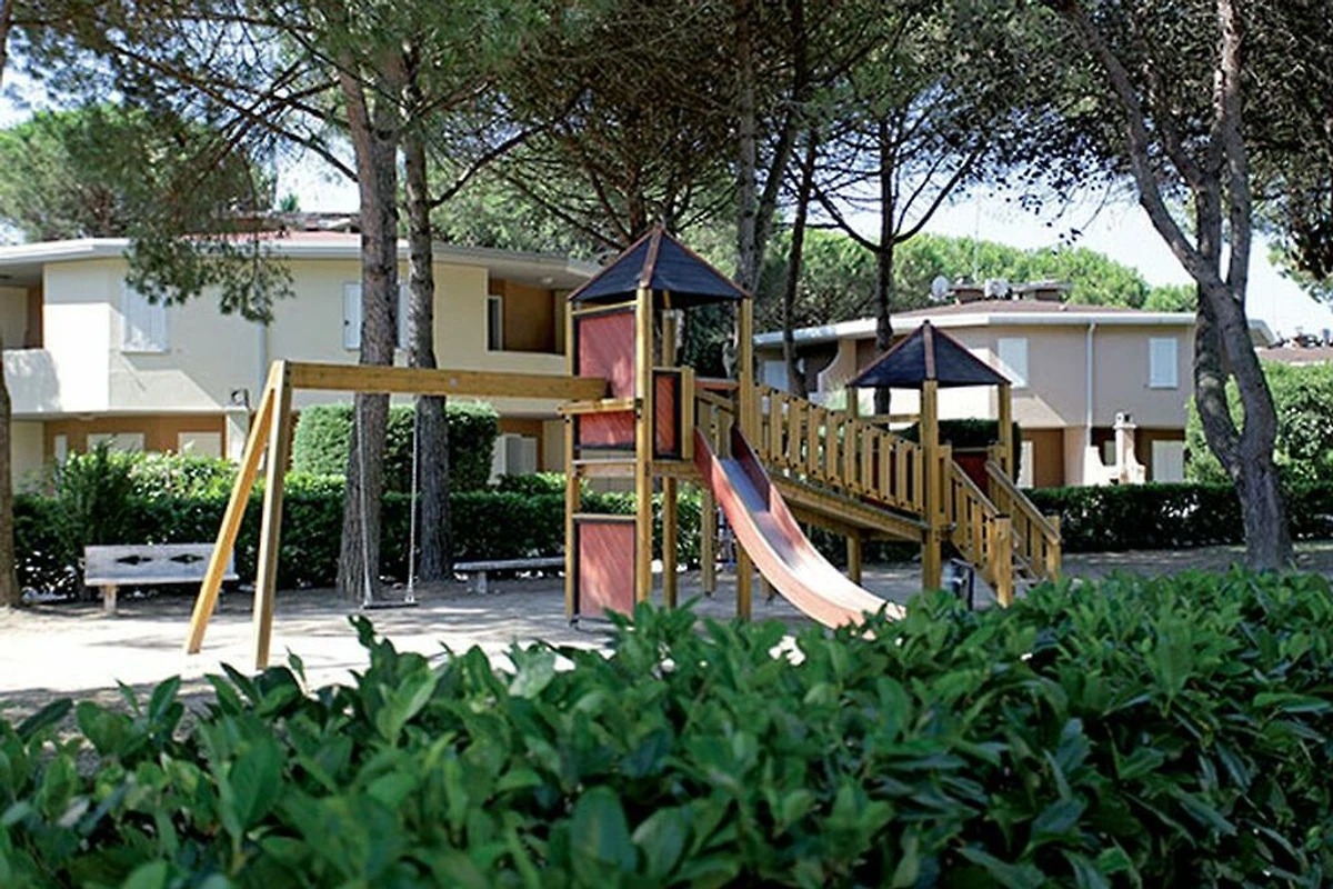 Die Ferienanlage liegt nur wenige Gehminuten vom Strand entfernt. In Fussnähe finden Sie Restaurants, Gelaterias und Einkaufsmöglichkeiten. Auch das Stadtzentrum kann zu Fuss erreicht werden.