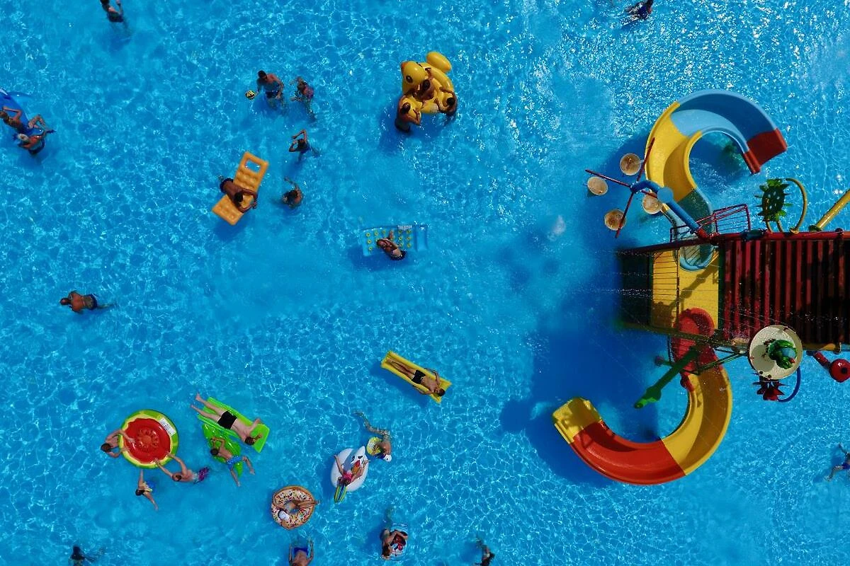 Den Feriengästen stehen drei Pools mit grossen Liegeflächen, Liegen und Sonnenschirmen zur Verfügung. Die Pools sind umrandet von viel Grünfläche. Es hat einen tollen Kinderpool mit riesigem Wasserspiel und neben einem Pool befindet sich ein kleiner Spielplatz.