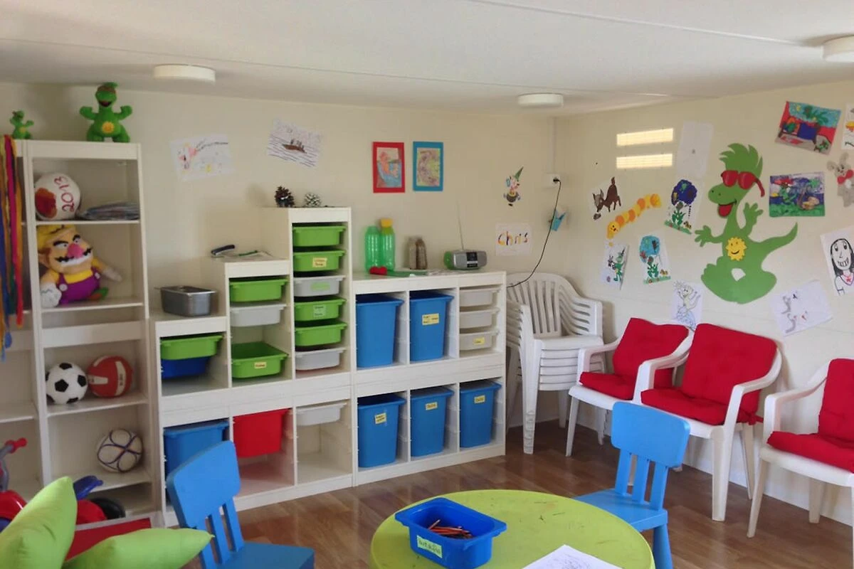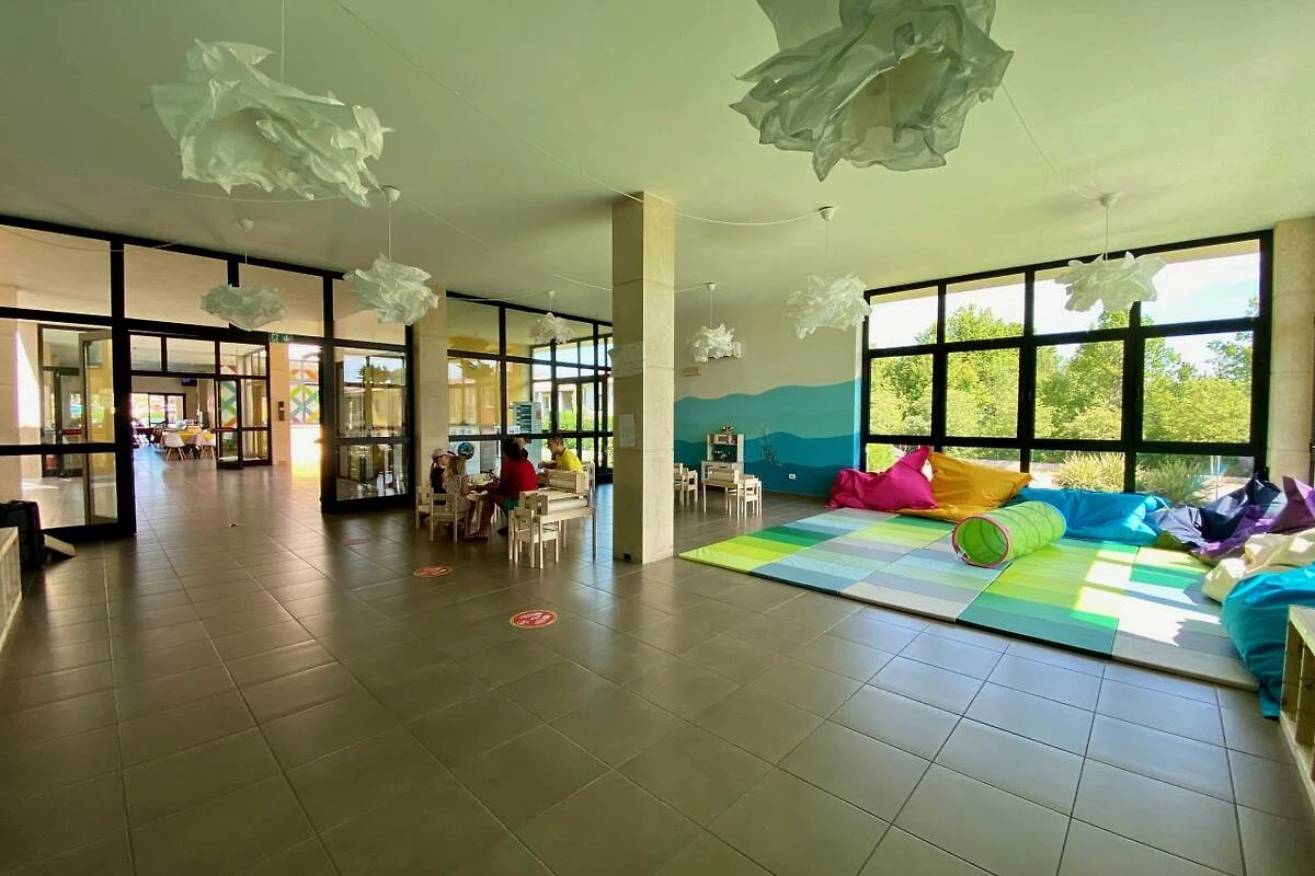 Ein gut ausgestatteter Ort für Menschen aller Altersgruppen, von Erwachsenen bis zu Kindern. Bereiche, in denen man sich entspannen kann und in denen man Spaß haben kann.