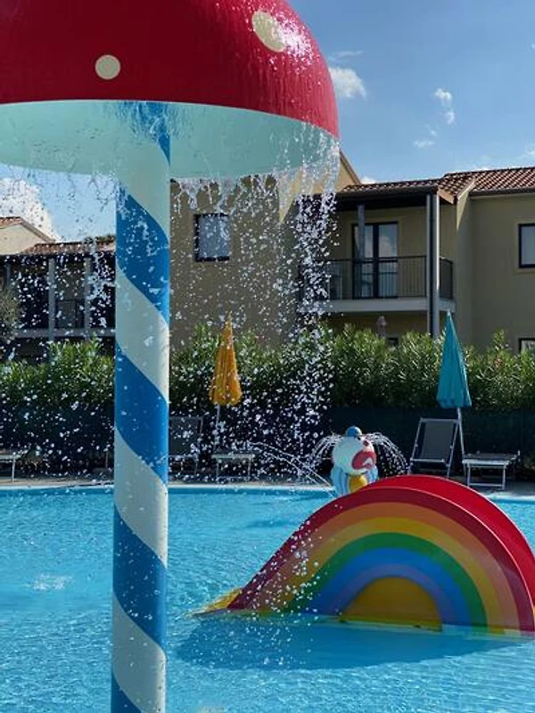Den Feriengästen stehen drei Pools mit grossen Liegeflächen, Liegen und Sonnenschirmen zur Verfügung. Die Pools sind umrandet von viel Grünfläche. Es hat einen tollen Kinderpool mit riesigem Wasserspiel und neben einem Pool befindet sich ein kleiner Spielplatz.