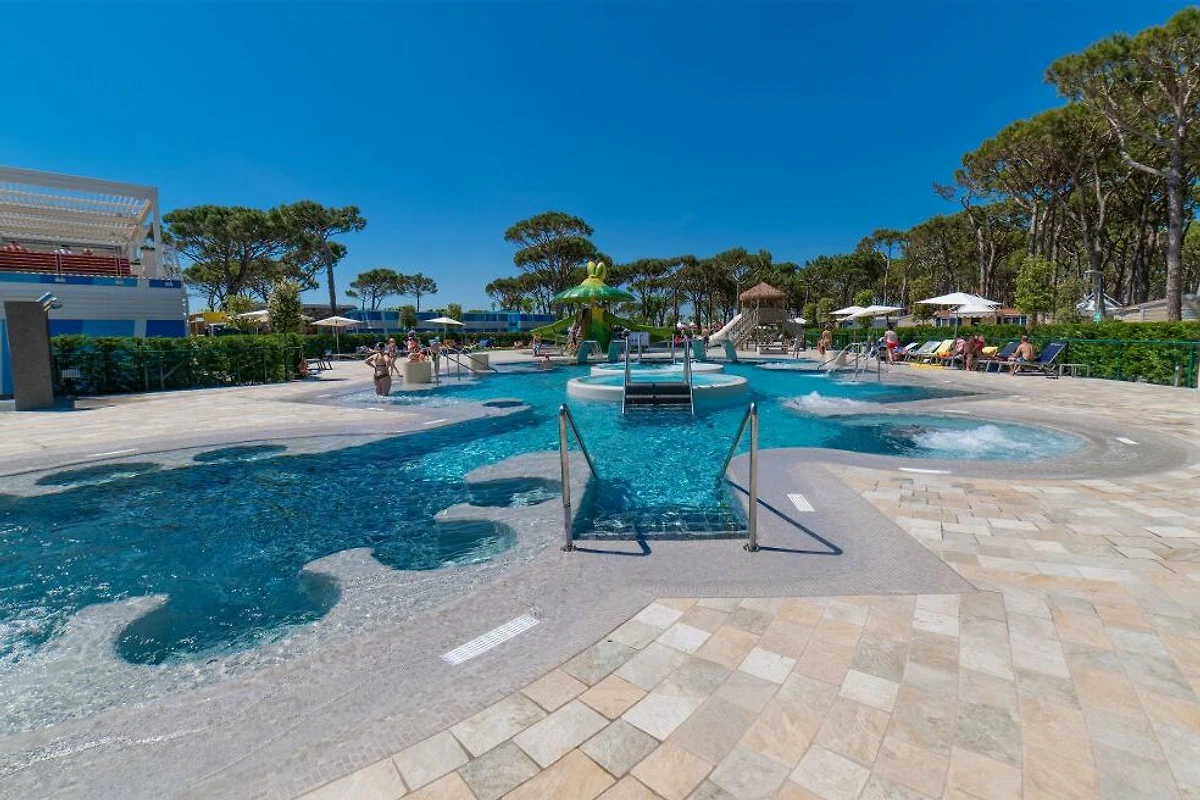 Die familienfreundliche Unterkunft befindet sich in der 4-Sterne-Ferienanlage Cavallino in Cavallino-Treporti. Das Feriendorf liegt direkt am Adriastrand im Golf von Venedig. Der tolle, breite Sandstrand garantiert einen gelungenen Strandurlaub für die ganze Familie und ist zudem seit Jahren mit der blauen Flagge ausgezeichnet. Die Kinder bauen Sandburgen, suchen Muscheln und planschen im Meer während die Grossen in der Sonne dösen und sich bräunen lassen. Das Gelände liegt schön versteckt in einem Naturpark mit Campingplatz sowie vielen Nadel- und Olivenbäumen. Die Ferienanlage verfügt neben einem schönen Kinderpool und Swimmingpool auch über Miniclub/Animation für Kinder sowie einem Unterhaltungsprogramm für Erwachsene. Ebenso wie ein toller Spielplatz, vielfältige Sportaktivitäten, Restaurants, Market und Bazar gehört auch ein gut ausgestatteter Sandstrand zur Ferienanlage. Weiter stehen den Feriengästen Münzwaschmaschinen und Trockner zur Verfügung (gegen Gebühr). Den Wasserpark „Aqualandia“ und den Freizeitpark „Jesolandia“ finden Sie unweit der Ferienanlage in Jesolo. Dank der geografisch vorteilhaften Lage ist ein Besuch von Venedig problemlos möglich.