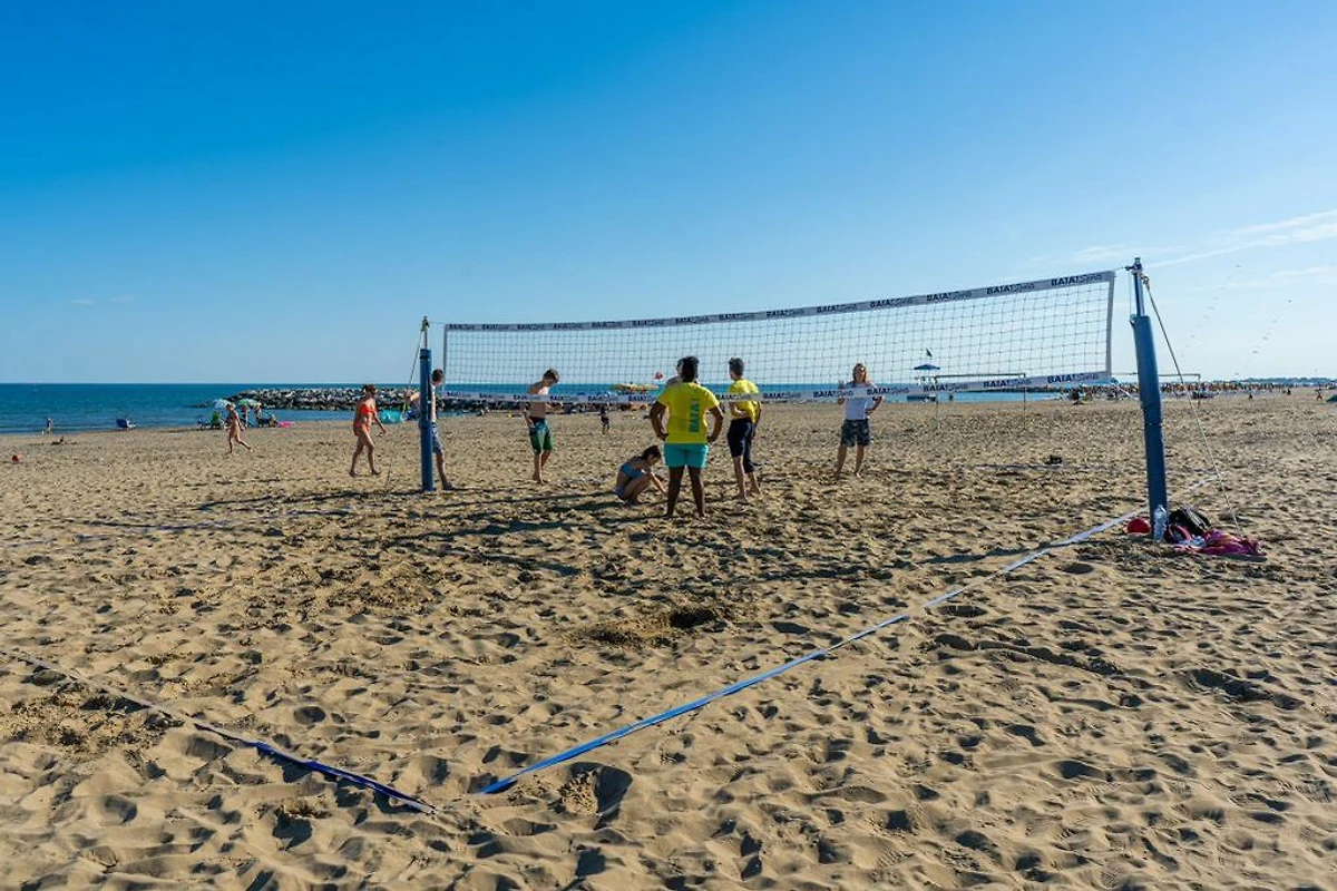 Der direkt an die Ferienanlage angrenzende breite, feinkörnige Sandstrand verfügt sowohl über einen Privat-Strand mit Liegen und Sonnenschirmen, als auch über einen grossen freien Sandstrand. Der flachabfallende Strand eignet sich besonders gut für Familien mit Kleinkindern. Der ideale Ort, um sich bei einem Sonnenbad zu entspannen oder mit den Kindern eine Sandburg zu bauen. Am Strand garantieren Gehwege bis zu den Sonnenschirmen den Zugang mit Kinderwagen. Bademeister sorgen den ganzen Tag für Sicherheit.