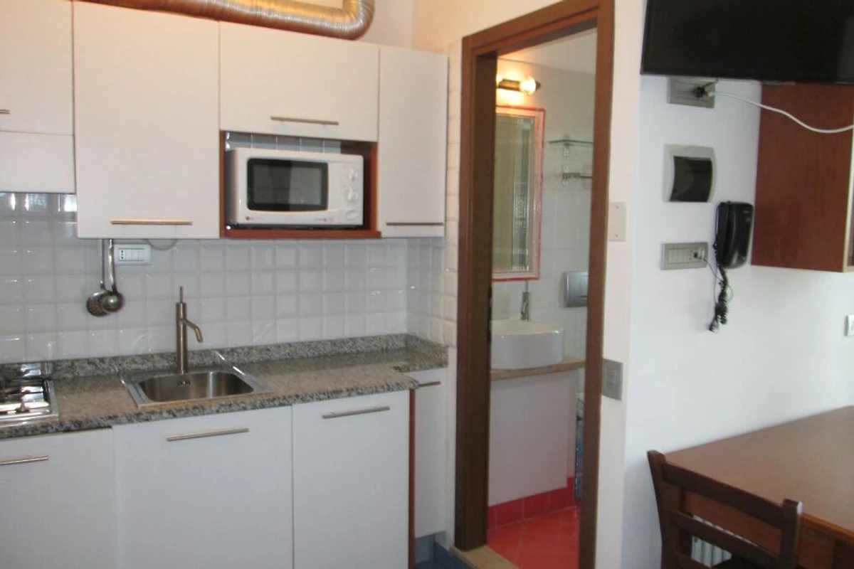 Die Wohnung bietet mit 20m2 Platz für max. 3 Personen. Die Wohnung besteht aus einem kombinierten Wohn- und Schlafraum mit einem Doppelschlafsofa und einem Einzelschlafsofa zum ausklappen. Es hat eine gut eingerichtete Küchenecke, welche über einen Herd, Geschirr, Besteck, Kochtöpfe, eine Mikrowelle, einen Toaster, eine Filterkaffeemaschine, eine Spülmaschine sowie einen Kühlschrank mit Eisfach verfügt. Das Badezimmer verfügt über eine Dusche, ein WC, ein Waschbecken sowie ein Bidet und einen Haartrockner. Der Balkon mit Tisch und Stühlen lädt zum gemütlichen Entspannen ein. SAT-TV ist vorhanden. Fahrzeit ab ital. Grenze ca. 3.5h. Hinweis: Wenn Sie mehr als eine Unterkunft benötigen, ist dies bei uns in der Regel möglich, da wir über mehrere Objekte des gleichen Haustyps verfügen.