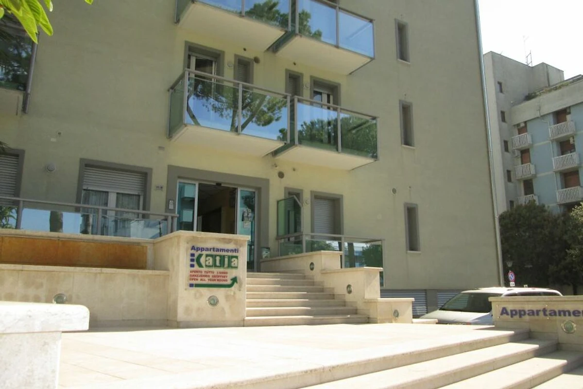 Die familienfreundliche Wohnung befindet sich in der Residenz Katja in Bibione. Trotz der zentralen Lage sind es nur wenige Gehminuten zum Sandstrand, was die Wohnung ideal für Familien macht. Die Residenz verfügt über einen eigenen Pool mit Liegeflächen, welche mit Liegen und Liegestühlen ausgestattet sind. Diverse Restaurants und Supermärkte liegen in nächster Nähe. Weiter steht den Feriengästen ein Aufzug zu den Wohnungen zur Verfügung. Wifi ist in den Hauptzonen der Ferienanlage vorhanden.