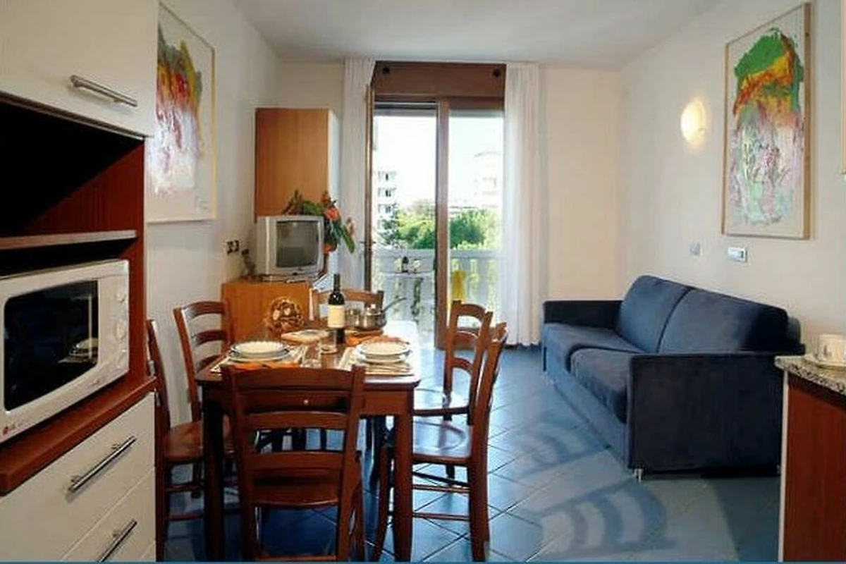 Die Wohnung verfügt über eine gut eingerichtete Küche mit Geschirr, Besteck, Töpfen, einer Mikrowelle, einem Toaster, einer Filterkaffeemaschine, einer Spülmaschine sowie einem Kühlschrank. Auch Einkaufsmöglichkeiten liegen in nächster Nähe. Falls Sie lieber in einem Restaurant essen möchten, bietet Bibione sehr viel Auswahl.