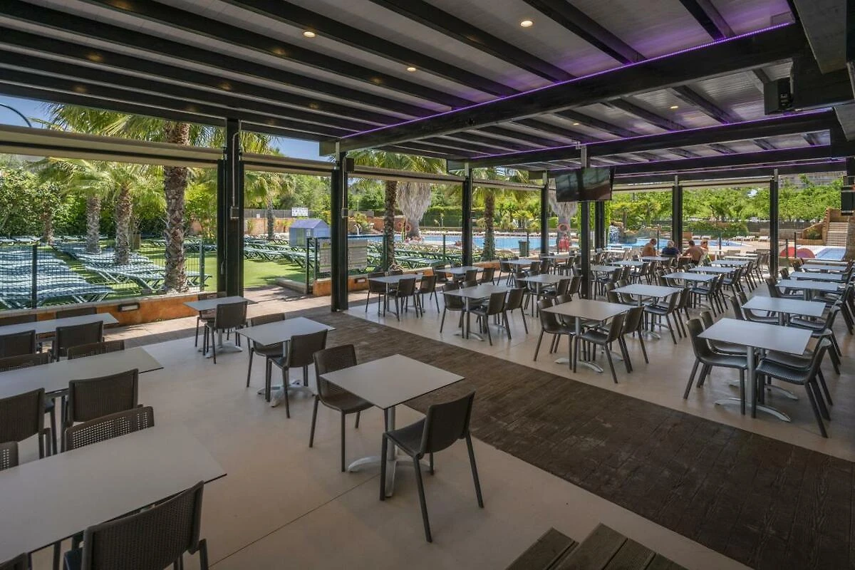 Die Unterkunft verfügt über eine gut eingerichtete Küche mit Geschirr, Besteck, Töpfen, einem Vitrokeramikherd, einer Mikrowelle, einer Kaffeemaschine sowie einem Kühlschrank mit Eisfach. Auch Einkaufmöglichkeiten liegen in nächster Nähe. Wer im Urlaub nicht selbst kochen mag, kann sich in einem der zwei Restaurants bekochen lassen. Das Restaurant am Eingang bietet ein tägliches Menü, Tapas und einfache Gerichte an. Im Restaurant der Poolanlage können unter anderem Pizzen, Pasta, Tapas und viele andere Gerichte gekostet werden.