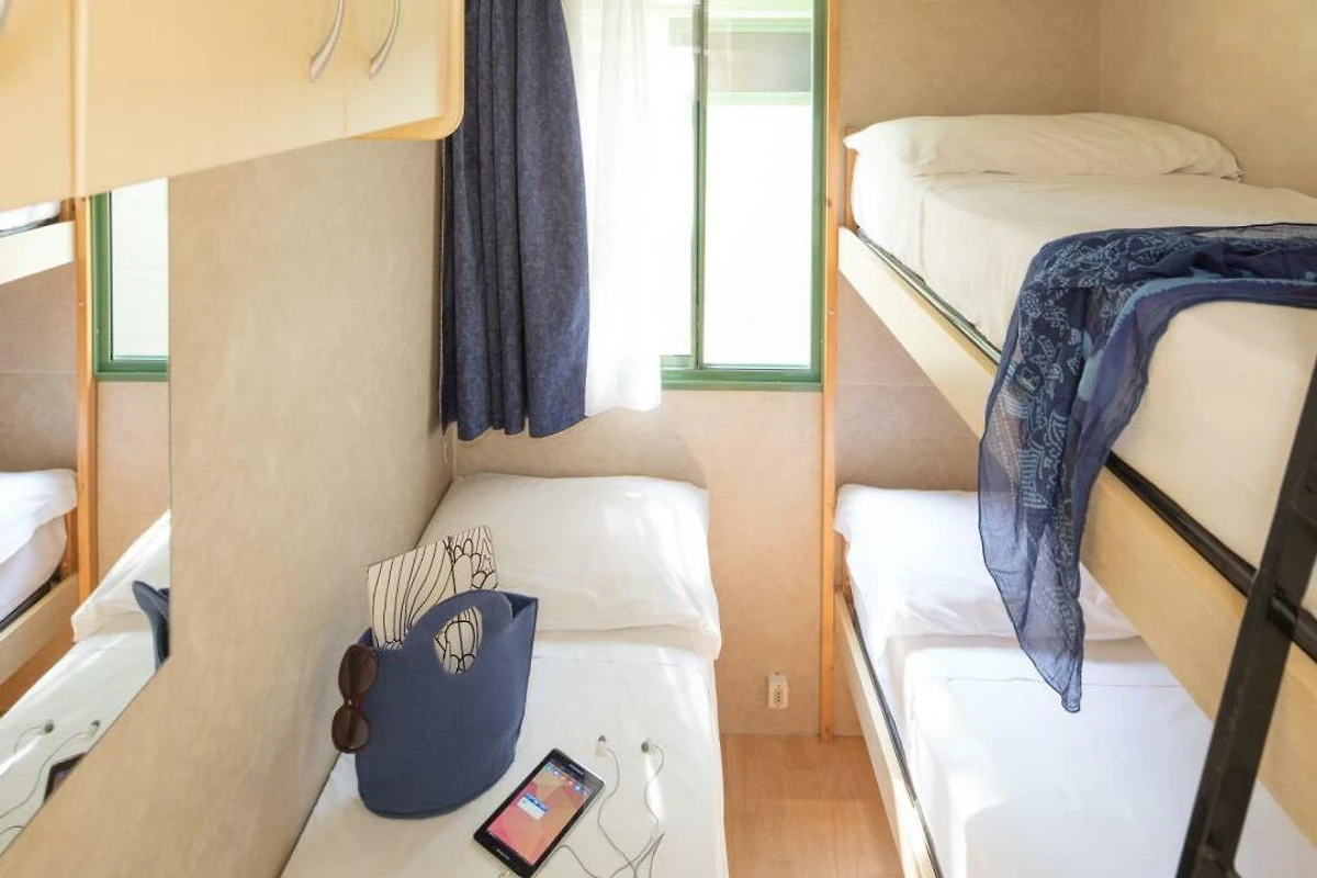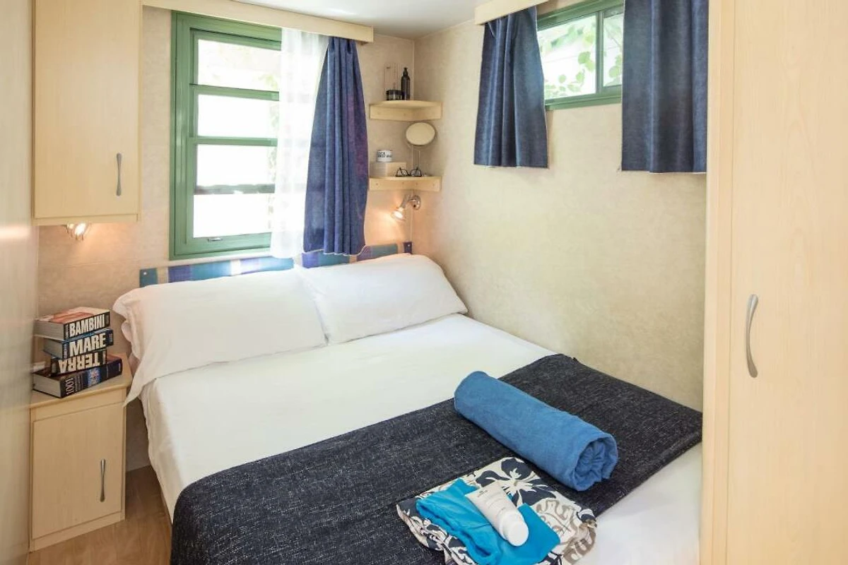 Die Unterkunft für max. 5 Personen besteht aus einem Elternschlafzimmer mit Doppelbett, sowie einem Schlafzimmer mit einem Etagenbett und einem Einzelbett. Die gut eingerichtete Küche befindet sich im Wohnbereich und verfügt über Geschirr, Besteck und Pfannen sowie Kühlschrank mit Eisfach. Das Badezimmer verfügt über eine Dusche sowie Waschbecken und WC. Der überdachte Sitzplatz, mit Tisch und Stühlen lädt zum gemütlichen Entspannen ein, während die Kinder sich auf dem Spielplatz oder am Pool austoben können. Grillen erlaubt. Fahrzeit ab ital. Grenze ca. 4h. Hinweis Wenn Sie mehr als eine Unterkunft benötigen, ist dies bei uns in der Regel möglich, da wir über mehrere Objekte des gleichen Haustyps verfügen.