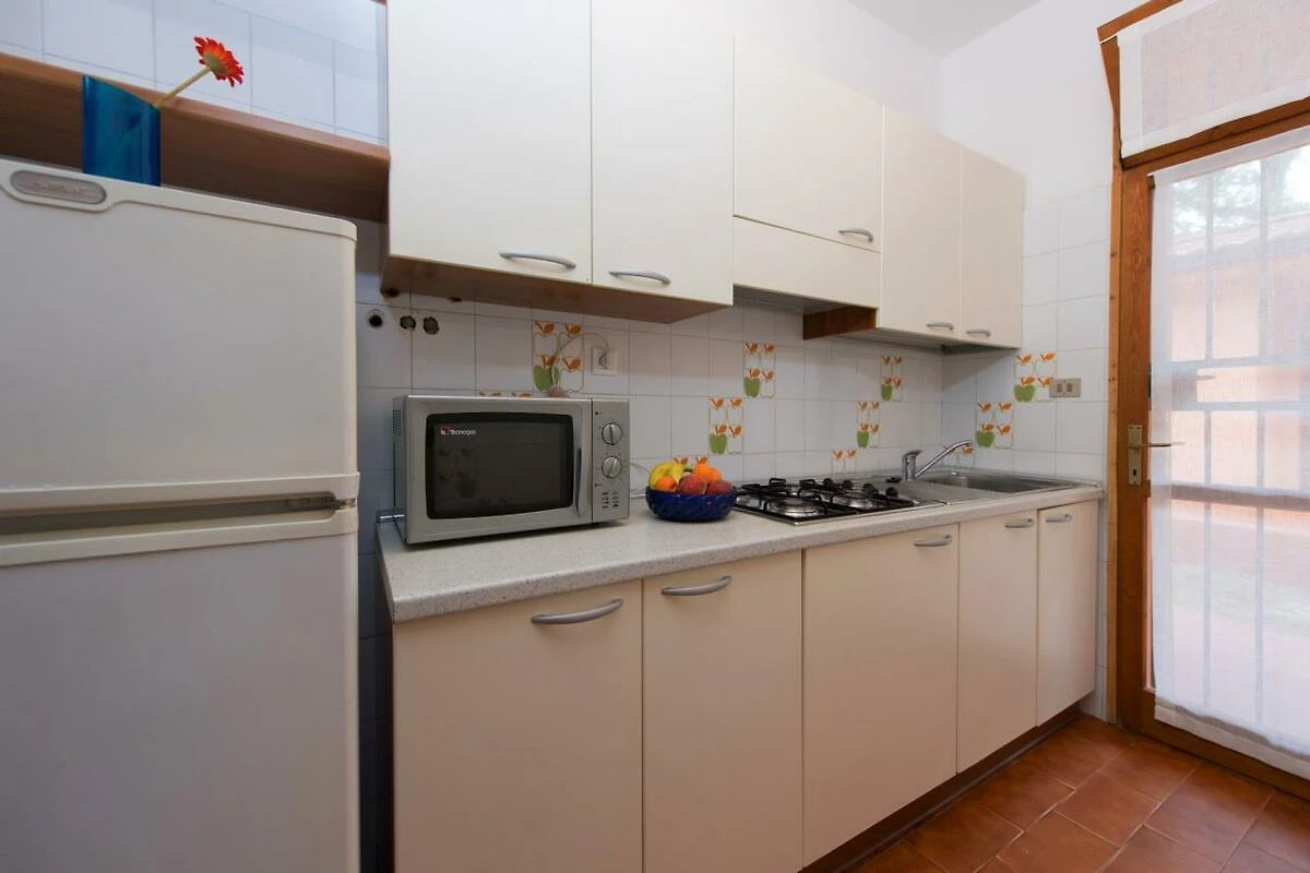 Die Wohnung verfügt über eine gut eingerichtete Küche mit Geschirr, Besteck, Töpfen sowie Kühlschrank mit Eisfach. Auch Einkaufsmöglichkeiten liegen in nächster Nähe. Wenn Sie einmal nicht selbst kochen, sondern sich kulinarisch verwöhnen lassen möchten, verfügt das Feriendorf auch über ein Restaurant, eine Pizzeria sowie eine Snack-Bar mit Take-Away. Falls Sie lieber von einer Halb- bzw. Vollpension Gebrauch machen möchten, können Sie diese gerne vor Ort dazu buchen (eine Voranmeldung ist nicht nötig).