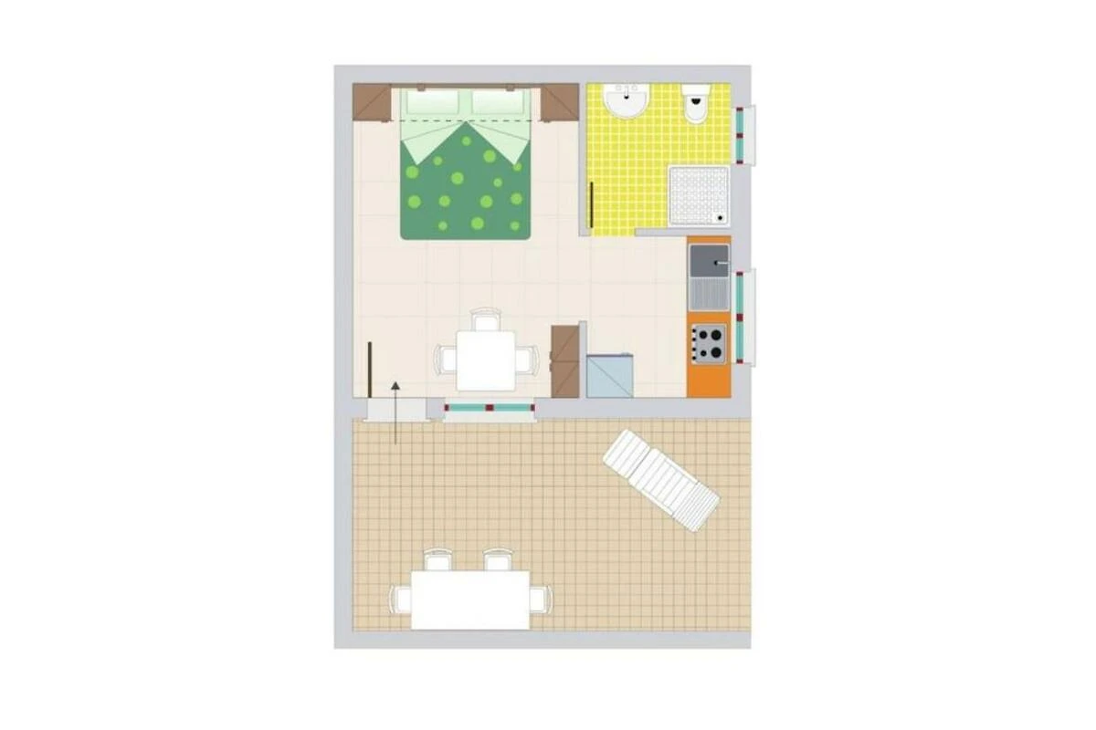 Der Bungalow 2 ist einfach und zweckmässig eingerichtet und bietet Platz für max. 3 Personen. Er verfügt über einen kombinierten Wohn- und Schlafraum mit einem Doppelbett, SAT TV und Esstisch. Bei einer Belegung mit 3 Personen wird ein Klappbett bzw. ein Reisebett zur Verfügung gestellt. Es hat eine gut eingerichtete Küchenecke, welche über einen Herd, Geschirr, Besteck, Kochtöpfe, Mikrowelle sowie einen Kühlschrank mit Eisfach verfügt. Das Badezimmer ist mit einer Dusche, WC und einem Waschbecken ausgestattet. Die überdachte Terrasse mit Tisch und Stühlen lädt zum gemütlichen Entspannen ein, während die Kinder sich auf dem Spielplatz oder am Pool austoben können. Fahrzeit ab italienischer Grenze ca. 4h. Hinweis: Wenn Sie mehr als eine Unterkunft benötigen, ist dies bei uns in der Regel möglich, da wir über mehrere Objekte des gleichen Haustyps verfügen.