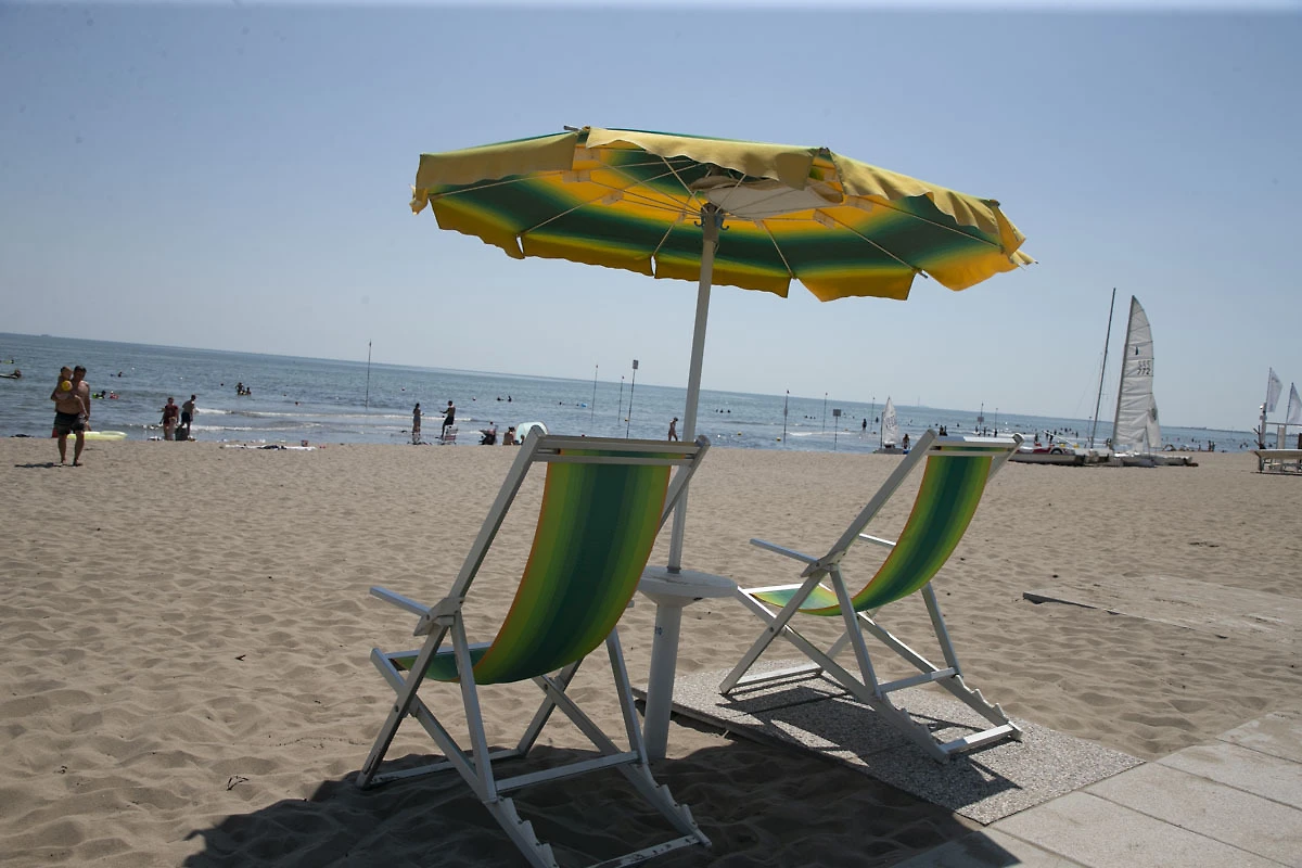 Die Ferienanlage liegt direkt am goldenen Sandstrand, welcher sehr flach abfallend ist und daher ideal für Familien mit Kleinkindern geeignet. Der Strand ist ausschliesslich für Gäste reserviert. Am Strand finden Sie reichlich Unterhaltung! Ein toller Spielplatz, Sportmöglichkeiten, Animation oder gemütliches Baden. Sie finden bestimmt etwas für Ihren Geschmack. Dank breiter Gehwegplatten bis zu den Sonnenschirmen ist der Strand auch mit Kinderwagen gut zu erreichen.