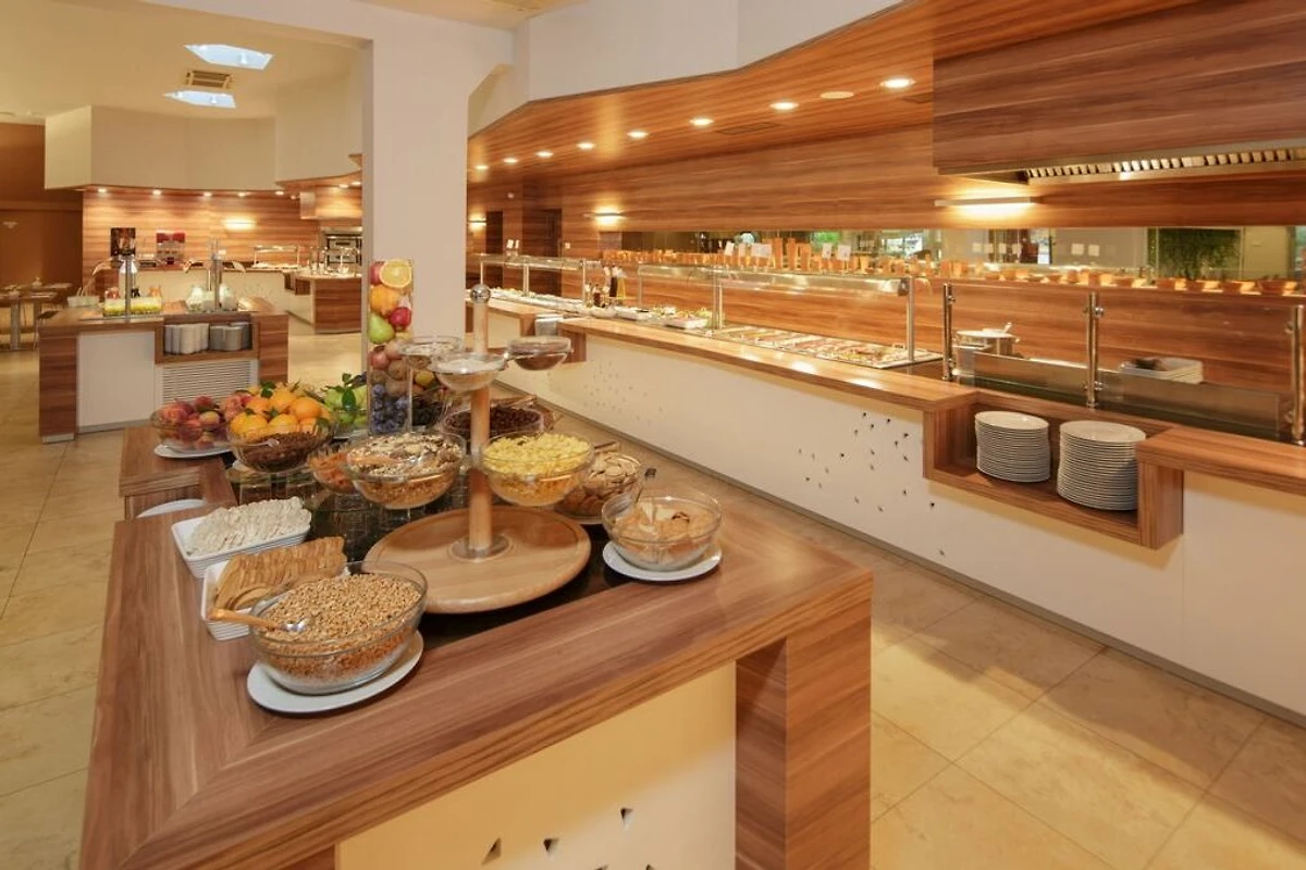 Die Unterkunft verfügt über eine gut eingerichtete Küche mit Herd, Geschirr, Besteck, Kochtöpfen sowie Kühlschrank. Auch Einkaufsmöglichkeiten liegen in nächster Nähe. Die Ferienanlage hat mehrere Restaurants in welchen sehr viele verschiedene Gerichte angeboten werden. Neben einer klassischen Pizzeria finden Sie auch Buffet Restaurant, Café Bars, eine Beach Bar sowie ein Fast-Food Corner und eine Sack-Bar. Falls Sie gerne von Frühstück oder Halbpension Gebrauch machen möchten, können Sie diese gerne vor Ort dazu buchen (eine Voranmeldung ist nicht nötig).