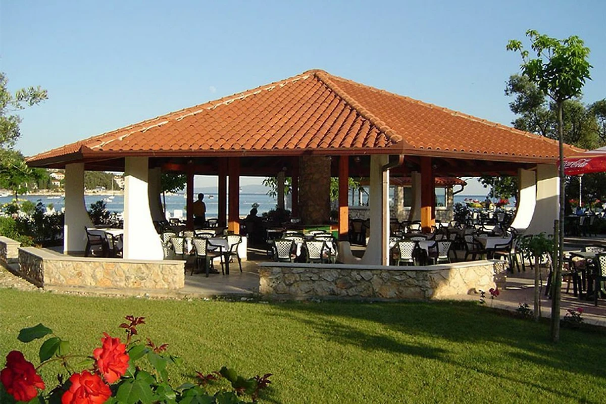 Der direkt an die Ferienanlage angrenzende weisse Kiesstrand verfügt sowohl über einen Privat-Strand mit Liegen und Sonnenschirmen als auch über einen grossen freien Strand. Der weite Kiesstrand eignet sich besonders gut für Familien. Eine Spielinsel auf dem Meer, lädt dazu ein, Spass zu haben. Den Gästen stehen diverse Wassersport-Möglichkeiten zur Verfügung ob beim Segeln, Tauchen, Schnorcheln oder Surfen, geniessen Sie das kristallklare Wasser des Mittelmeers. Der ideale Ort, um sich bei einem Sonnenbad zu entspannen, ein Buch zu lesen oder sich einer der Sportaktivitäten zu widmen. Ein schneller Imbiss kann im Schatten der Strandbar eingenommen werden, die tagsüber geöffnet ist und ein einladendes, erfrischend leckeres Angebot führt. Bademeister sorgen den ganzen Tag für Sicherheit.