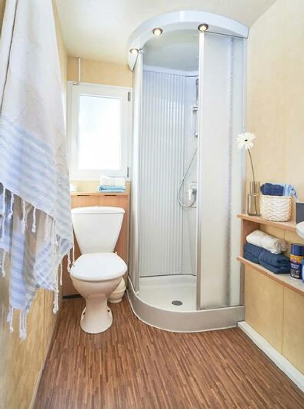 Die Unterkunft Tahiti für maximal 4 Personen (eine Überbelegung mit einem Kind bis max. 4 Jahre ist auf Anfrage möglich) besteht aus einem Elternschlafzimmer sowie einem Kinderzimmer mit zwei Einzelbetten und einem Hochbett (nur für kleine Kinder geeignet, Bett ist 140cm lang). Die gut eingerichtete Küche befindet sich im Wohnbereich und verfügt über Geschirr, Besteck, Kochtöpfe sowie Kühlschrank mit Eisfach. Das Badezimmer verfügt über eine Dusche, ein Waschbecken und ein WC. Die überdachte Holzterrasse, mit Tisch, Stühlen sowie zwei Liegen, lädt zum gemütlichen Entspannen ein, während die Kinder sich auf dem Spielplatz oder am Pool austoben können. Fahrzeit ab ital. Grenze ca. 3.5h. Hinweis: Wenn Sie mehr als eine Unterkunft benötigen, ist dies bei uns in der Regel möglich, da wir über mehrere Objekte des gleichen Haustyps verfügen.