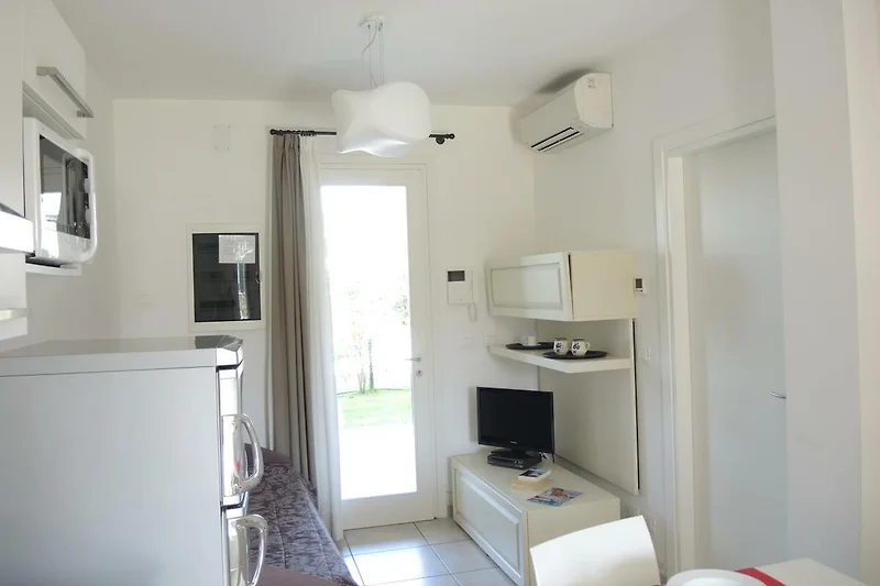 Die schöne Dreizimmer-Wohnung Tipo C* Erdgeschoss bietet Platz für max. 6 Personen inkl. Babys. Die Unterkunft befindet sich im Erdgeschoss und besteht aus einem Schlafzimmer mit einem Doppelbett und einem Einzelbett sowie einem Schlafzimmer mit einem Einzelbett. Im Wohnbereich bietet ein Bettsofa zwei weitere Schlafplätze. Ebenfalls im Wohnbereich befindet sich die gut eingerichtete Küche mit einem 4-flammigen Gasherd, Geschirr, Besteck, Töpfen, einer Mikrowelle, einer italienische Espressokanne, einem Wasserkocher,einer Geschirrspülmaschine und einem Kühlschrank mit Eisfach. Das Badezimmer verfügt über eine Dusche, ein WC, ein Bidet, ein Waschbecken sowie eine Waschmaschine. Die Wohnung verfügt über zwei überdachte Terrassen mit kleinem Garten. Eine der Terrassen ist mit Tisch, Stühlen und einem Kamin (Grillrost bitte selber mitbringen) ausgestattet und lädt zum gemütlichen Entspannen ein, während sich die Kinder am Pool austoben können. Die Fahrzeit ab der ital. Grenze beträgt ca. 4h. Hinweis: Wenn Sie mehr als eine Unterkunft benötigen, ist dies bei uns in der Regel möglich, da wir über mehrere Objekte des gleichen Haustyps verfügen.