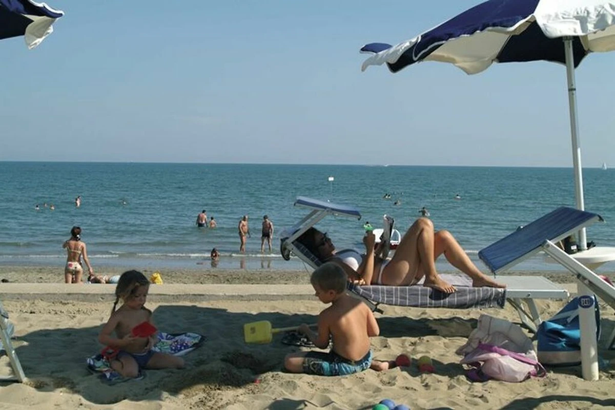 Der lange und breite Sandstrand ist in wenigen Gehminuten zu erreichen und verfügt sowohl über einen Abschnitt mit Liegen und Sonnenschirmen die zur Vermietung bereitstehen, als auch über einen grossen freien Sandstrand. Der flachabfallende Sandstrand eignet sich besonders gut für Familien mit Kleinkindern. Den Gästen stehen einige Wassersport-Möglichkeiten zur Verfügung. Sie können ein Tretboot oder ein Kanu mieten oder versuchen Windsurfing zu erlernen. Somit ist der Strand der ideale Ort, um sich bei einem Sonnenbad zu entspannen oder sich einer der vielen Sportaktivitäten zu widmen.