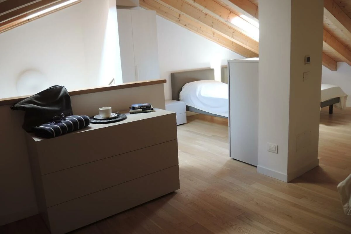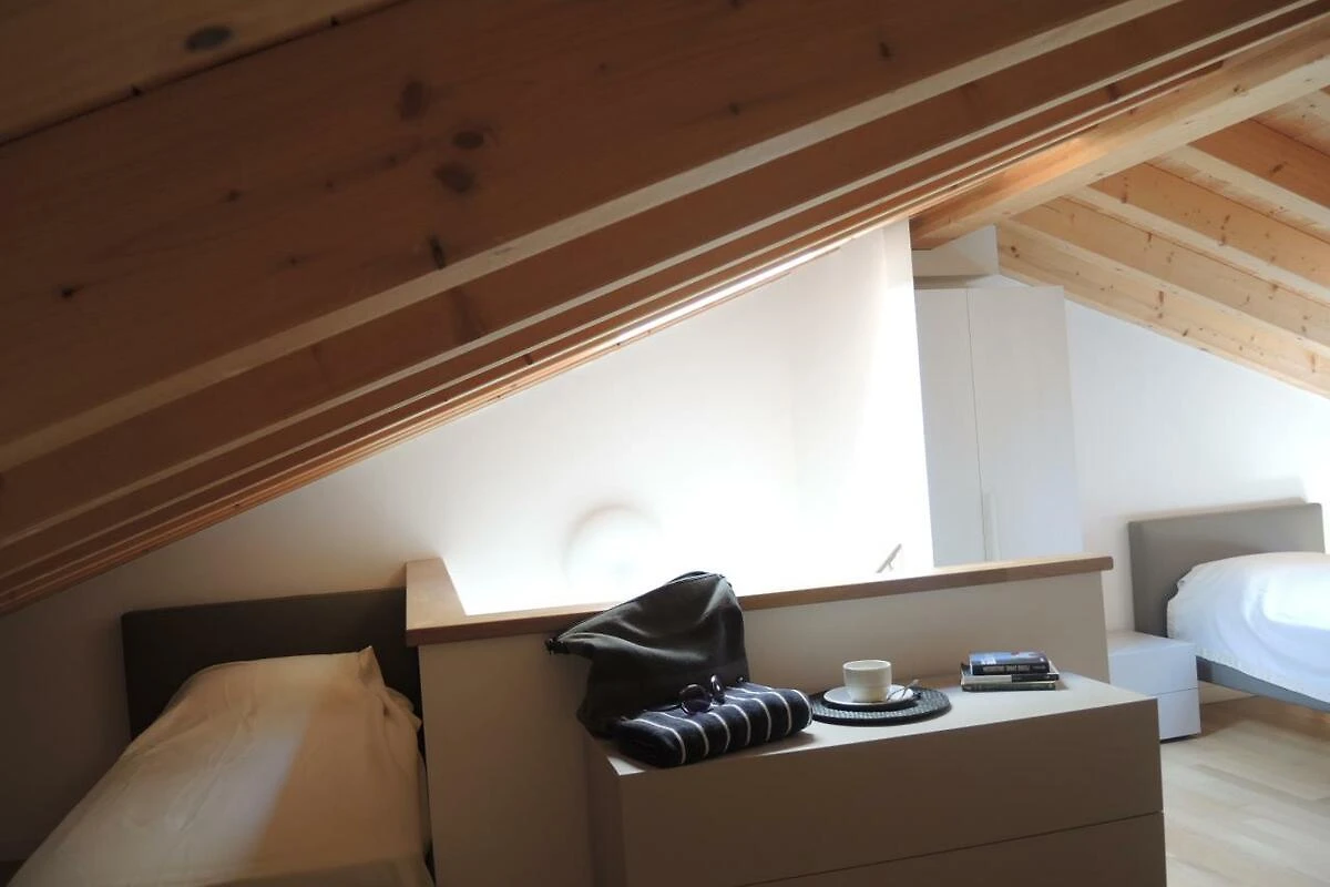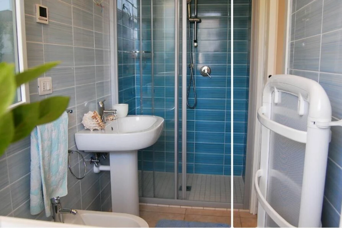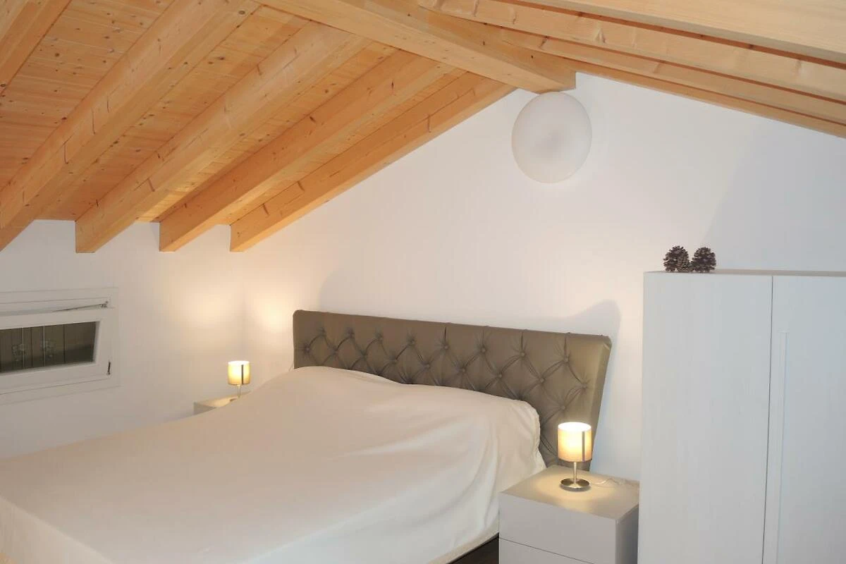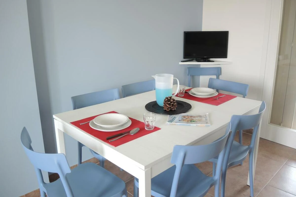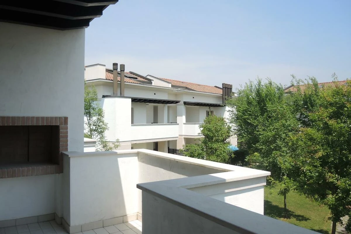 Die schöne zweistöckige Vierzimmer-Wohnung Tipo D* bietet Platz für 8 Personen. Die zweistöckige Unterkunft erstreckt sich über das erste Obergeschoss sowie die Mansarde und steht in zwei verschiedenen Aufteilungen zur Verfügung. In der ersten Variante befinden sich im ersten Stock ein Zimmer mit Doppelbett sowie ein weiteres Zimmer mit einem Einzelbett. Die Mansarde ist hierbei mit einem Doppelbett und drei Einzelbetten ausgestattet; alternativ bietet ein Schlafsofa im Wohnbereich eine weitere Schlafmöglichkeit. Die zweite Variante bietet im ersten Stock ein Zimmer mit Doppelbett und Einzelbett sowie ein zusätzliches Zimmer mit einem Einzelbett. In der Mansarde befinden sich in dieser Ausführung ein Doppelbett und ein Einzelbett, während das Schlafsofa im Wohnzimmer als weiterer Schlafplatz genutzt werden kann. Die gut eingerichtete Küche befindet sich im Wohnbereich und verfügt über einen 4-flammigen Gasherd, Geschirr, Besteck, Töpfe, eine Mikrowelle, einen Toaster, eine Geschirrspülmaschine und einen Kühlschrank mit Eisfach. Die Wohnung verfügt über ein Bad, welches mit einer Dusche, einem WC, einem Waschbecken sowie einer Waschmaschine ausgestattet ist. Die Wohnung verfügt über zwei überdachte Balkone. Ein Balkon ist mit Tisch, Stühlen und einem Kamin (Grillrost bitte selber mitbringen) ausgestattet und lädt zum gemütlichen Entspannen ein, während sich die Kinder am Pool austoben können. Die Fahrzeit ab der ital. Grenze beträgt ca. 4h. Hinweis: Wenn Sie mehr als eine Unterkunft benötigen, ist dies bei uns in der Regel möglich, da wir über mehrere Objekte des gleichen Haustyps verfügen.