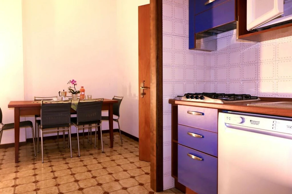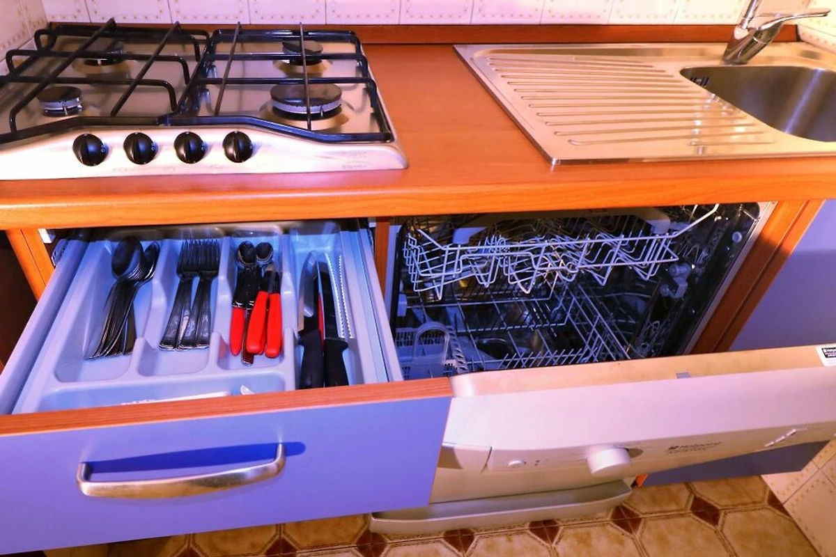Die Wohnung verfügt über eine gut eingerichtete Küche mit Geschirr, Besteck und Pfannen sowie Kühlschrank mit Eisfach. Auch Einkaufsmöglichkeiten liegen in nächster Nähe. Falls Sie lieber in einem Restaurant essen möchten, Bibione bietet sehr viel Auswahl.