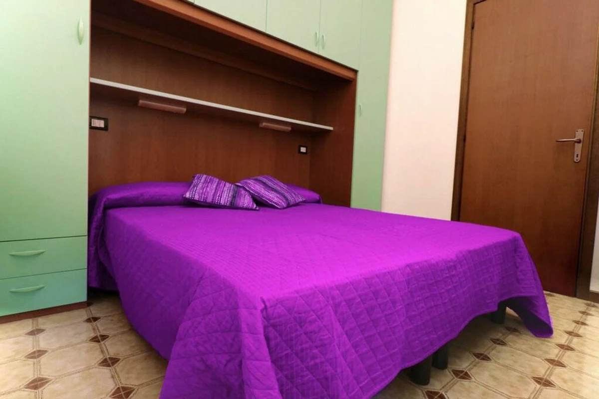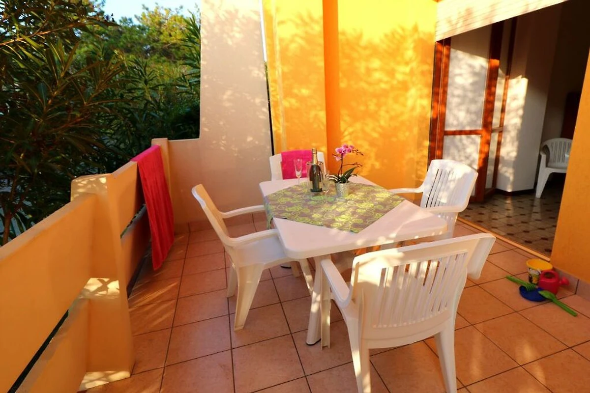 Die Dreizimmer-Wohnung Elegance ist direkt am Meer gelegen und ist für max. 8 Personen geeignet. Die Wohnung besteht aus einem Schlafzimmer mit Ehebett (sofern die Unterkunft für 7 bzw. 8 Personen gebucht wird, ist im Elternschlafzimmer noch ein Stockbett (Runterfallschutz kann dazu gemietet werden) vorhanden. Das zweite Schlafzimmer ist mit zwei Einzelbetten ausgestattet. Im Wohnbereich bietet ein Schlafsofa weitere zwei Schlafplätze. Die gut eingerichtete Küche befindet sich im Wohnbereich und verfügt über Geschirr, Besteck, Pfannen, Geschirrspüler, Mikrowelle, italienische Mokkamaschine, Filterkaffeemaschine sowie Kühlschrank mit Eisfach. Es ist auch eine private Waschmaschine vorhanden. Das Badezimmer verfügt über eine Dusche sowie Waschbecken, Bidet und WC. Der überdachte Balkon mit Tisch und Stühlen lädt zum gemütlichen Entspannen ein. Die Residenz hat einen Aufzug. Fahrzeit ab ital. Grenze ca. 4h. Hinweis Wenn Sie mehr als eine Unterkunft benötigen, ist dies bei uns in der Regel möglich, da wir über mehrere Objekte des gleichen Haustyps verfügen.
