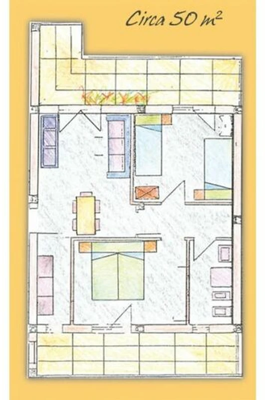 Die Dreizimmer-Wohnung Tipo C mit Klimaanlage AGEURA bietet Platz für max. 6 Personen und verfügt über 2 Schlafzimmer mit je einem Ehebett oder zwei Einzelbetten. Zwei weitere Schlafplätze bietet das Bettsofa im Wohnzimmer. Die Küche wurde im Wohnraum integriert und verfügt über einen Herd, Kochtöpfe, Geschirr, Besteck, Kaffeemaschine, Mikrowelle und einen Kühlschrank mit Eisfach (Spülmaschine auf Anfrage). Das Badezimmer ist mit einer Dusche, WC, Bidet und einem Waschbecken ausgestattet. Ein Fernseher ist im Wohnzimmer vorhanden. Die Terrasse (auf Anfrage teilweise mit Poolsicht) mit Tisch und Stühlen lädt zum gemütlichen Entspannen ein, während die Kinder sich auf dem Spielplatz oder am Pool austoben können. Fahrzeit ab italienischer Grenze ca. 4h. Hinweis: Wenn Sie mehr als eine Unterkunft benötigen, ist dies bei uns in der Regel möglich, da wir über mehrere Objekte des gleichen Haustyps verfügen.
