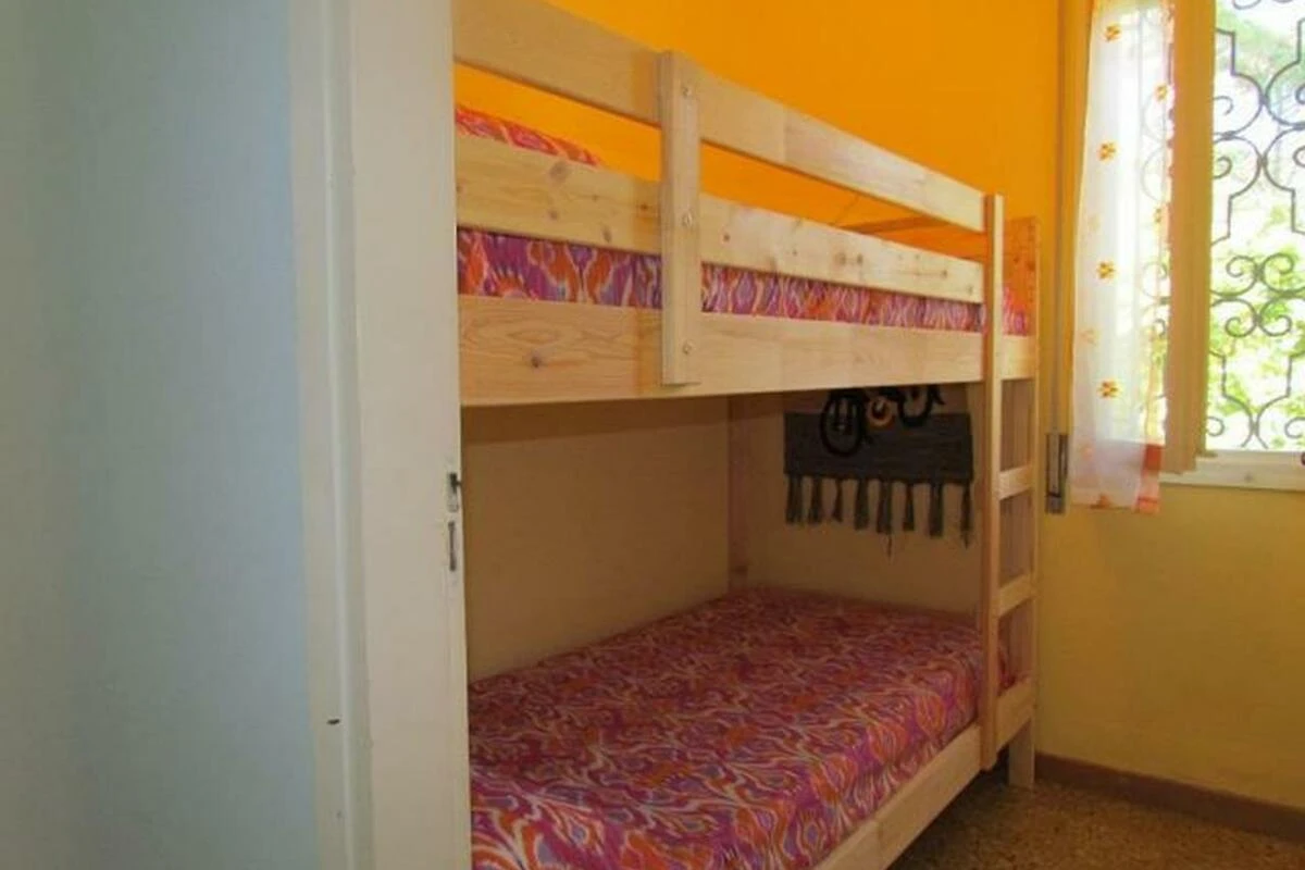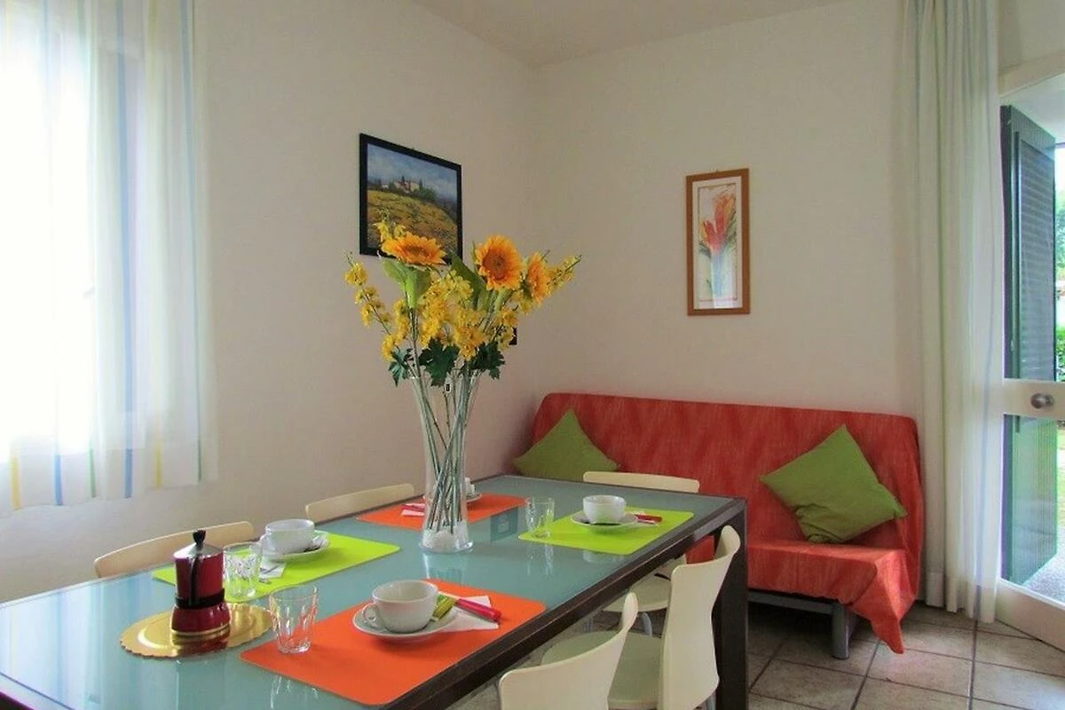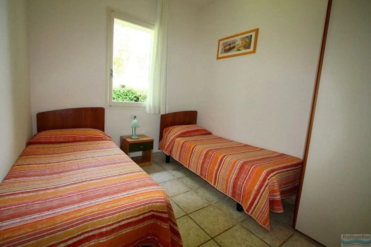 Das gemauerte, grosszügige Reihenferienhaus Ville Verdi bietet Platz für 8 Personen (davon mind. 1 Kind bis max. 12 Jahre) und verfügt über ein Schlafzimmer mit einem Ehebett, ein Schlafzimmer mit zwei Einzelbetten (welche bei Bedarf zu einem Doppelbett zusammengeschoben werden können) sowie über ein Kinderzimmer mit einem Stockbett. Das Schlafsofa im Wohnzimmer kann bei Bedarf in zwei weitere Schlafplätze umfunktioniert werden. Die gut eingerichtete Küche verfügt über einen Kochherd, Mikrowelle, Kaffeemaschine, Geschirr, Besteck, Kochtöpfe und einen Kühlschrank mit Eisfach. Das Badezimmer ist mit einer Duschkabine, einem WC, einem Bidet und einem Waschbecken ausgestattet. Zudem verfügt die Unterkunft über einen Safe, einen Fernseher und eine eigene Waschmaschine. Ein Reisebett kann vor Ort gemietet werden (bitte beim Buchen reservieren). Das Ferienhaus besitzt einen privaten Garten, welcher mit einer Hecke von den Nachbargrundstücken abgetrennt ist. Die halbüberdachte Terrasse lädt mit Stühlen, einem Tisch und zwei Liegestühlen zum Entspannen ein und auf dem Grundstück steht bereits ein Kamin für gemütliche Grillabende für Sie bereit (Grillrost bitte selber mitbringen). Ein überdachter Parkplatz steht Ihnen auf dem Grundstück zur Verfügung. Die Fahrzeit ab der italienischen Grenze beträgt ca. 4h. Hinweis: Wenn Sie mehr als eine Unterkunft benötigen, ist dies bei uns in der Regel möglich, da wir über mehrere Objekte des gleichen Haustyps verfügen.