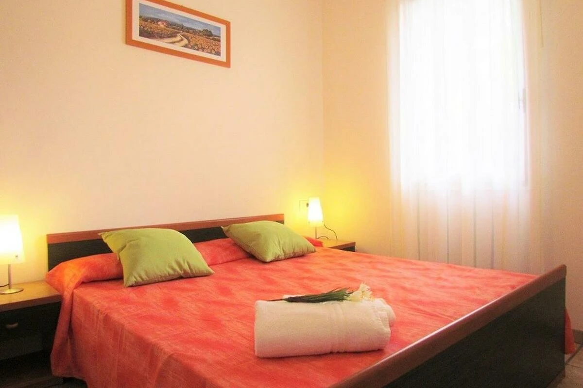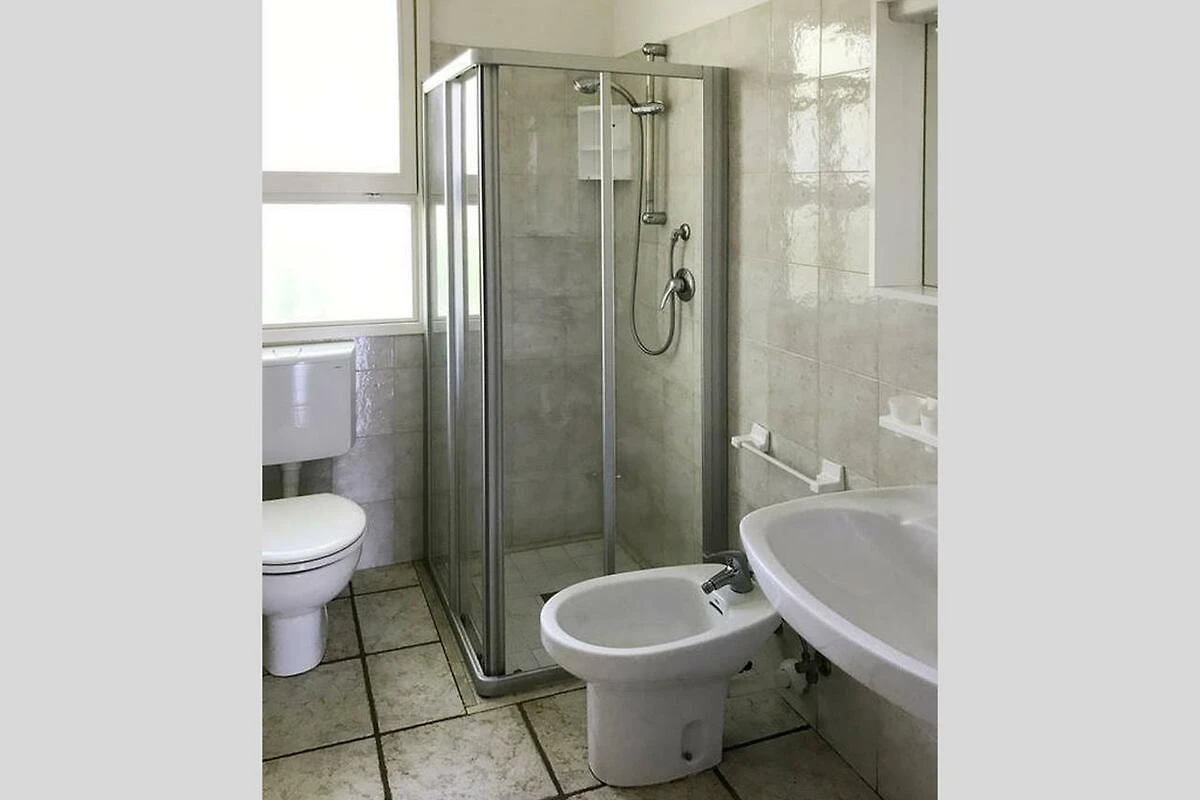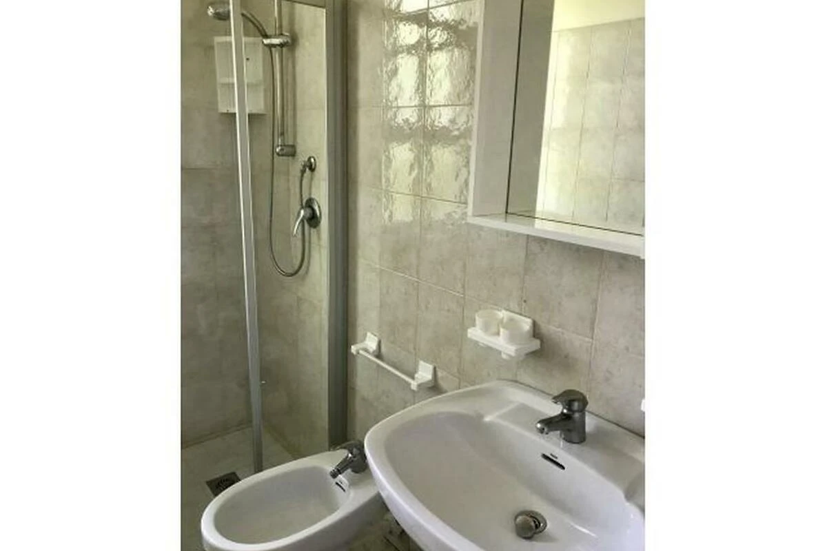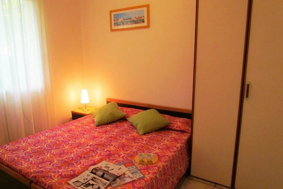 Das gemauerte, grosszügige Reihenferienhaus Ville Verdi bietet Platz für 8 Personen (davon mind. 1 Kind bis max. 12 Jahre) und verfügt über ein Schlafzimmer mit einem Ehebett, ein Schlafzimmer mit zwei Einzelbetten (welche bei Bedarf zu einem Doppelbett zusammengeschoben werden können) sowie über ein Kinderzimmer mit einem Stockbett. Das Schlafsofa im Wohnzimmer kann bei Bedarf in zwei weitere Schlafplätze umfunktioniert werden. Die gut eingerichtete Küche verfügt über einen Kochherd, Mikrowelle, Kaffeemaschine, Geschirr, Besteck, Kochtöpfe und einen Kühlschrank mit Eisfach. Das Badezimmer ist mit einer Duschkabine, einem WC, einem Bidet und einem Waschbecken ausgestattet. Zudem verfügt die Unterkunft über einen Safe, einen Fernseher und eine eigene Waschmaschine. Ein Reisebett kann vor Ort gemietet werden (bitte beim Buchen reservieren). Das Ferienhaus besitzt einen privaten Garten, welcher mit einer Hecke von den Nachbargrundstücken abgetrennt ist. Die halbüberdachte Terrasse lädt mit Stühlen, einem Tisch und zwei Liegestühlen zum Entspannen ein und auf dem Grundstück steht bereits ein Kamin für gemütliche Grillabende für Sie bereit (Grillrost bitte selber mitbringen). Ein überdachter Parkplatz steht Ihnen auf dem Grundstück zur Verfügung. Die Fahrzeit ab der italienischen Grenze beträgt ca. 4h. Hinweis: Wenn Sie mehr als eine Unterkunft benötigen, ist dies bei uns in der Regel möglich, da wir über mehrere Objekte des gleichen Haustyps verfügen.