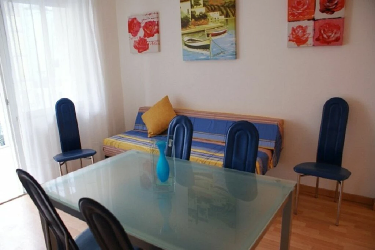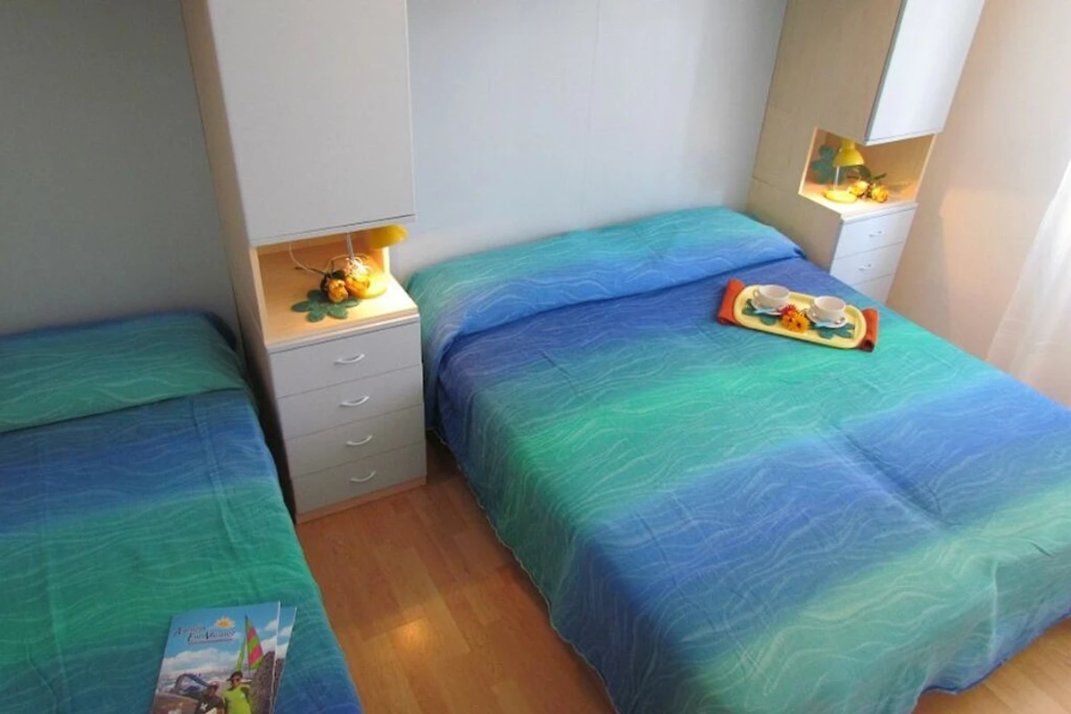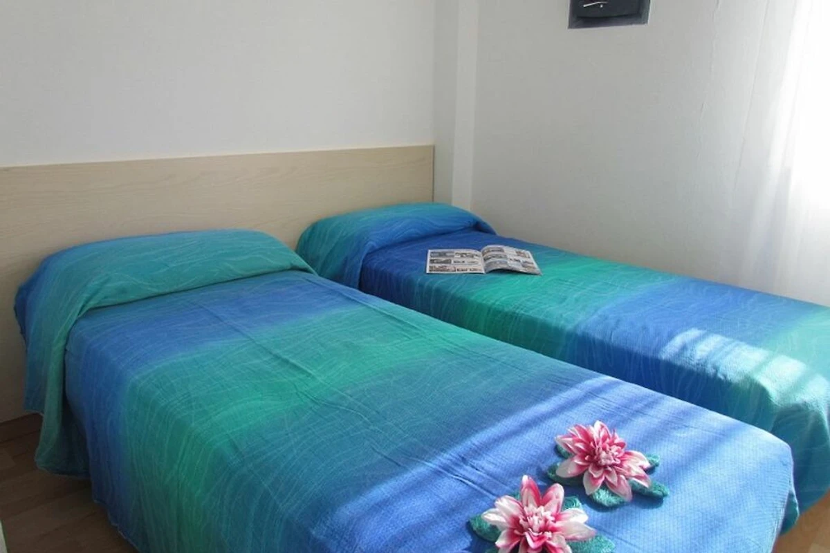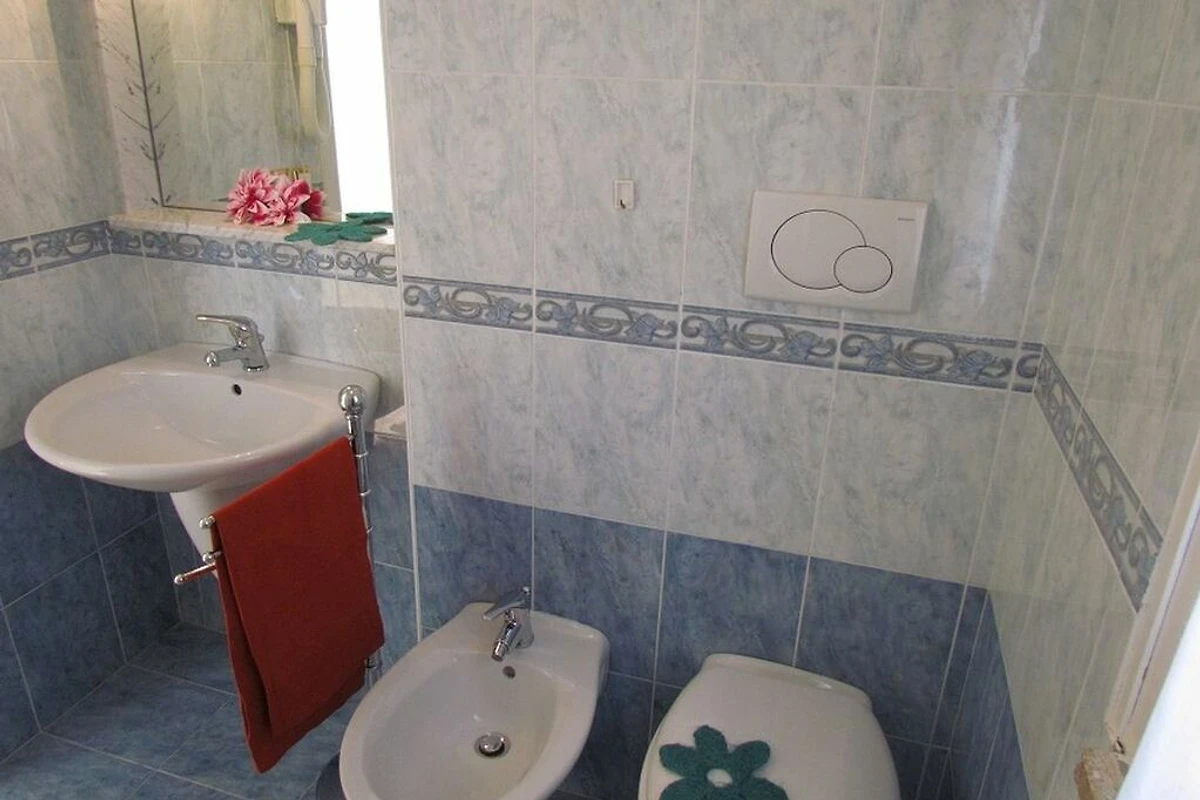 Die grosszügige 3 Zimmer-Wohnung Elba 25 bietet Platz für max. 7 Personen und befindet sich im 2. Stock. Die Wohnung verfügt über ein Schlafzimmer mit einem Doppel- und einem Einzelbett sowie ein Zimmer mit zwei Einzelbetten. Im Wohnbereich bietet ein Bettsofa bei Bedarf Schlafplätze für zwei weitere Personen. Eine gut eingerichtete Kochnische mit Herd, Geschirr, Besteck, Töpfen, Mikrowelle, Wasserkocher, Filterkaffeemaschine und Kühlschrank mit Eisfach befindet sich im Wohnbereich. Das Badezimmer verfügt über eine Dusche, ein Waschbecken, ein Haartrockner, Bidet, sowie ein WC. In der Wohnung ist ein TV vorhanden. Die Wohnung verfügt über einen überdachten Balkon welcher mit Tisch und Stühlen zum Verweilen einlädt. Bei Bedarf kann ein Reisebett dazu gemietet werden (bei Buchung bitte reservieren). Die Fahrzeit ab italienischer Grenze beträgt ca. 4h.
