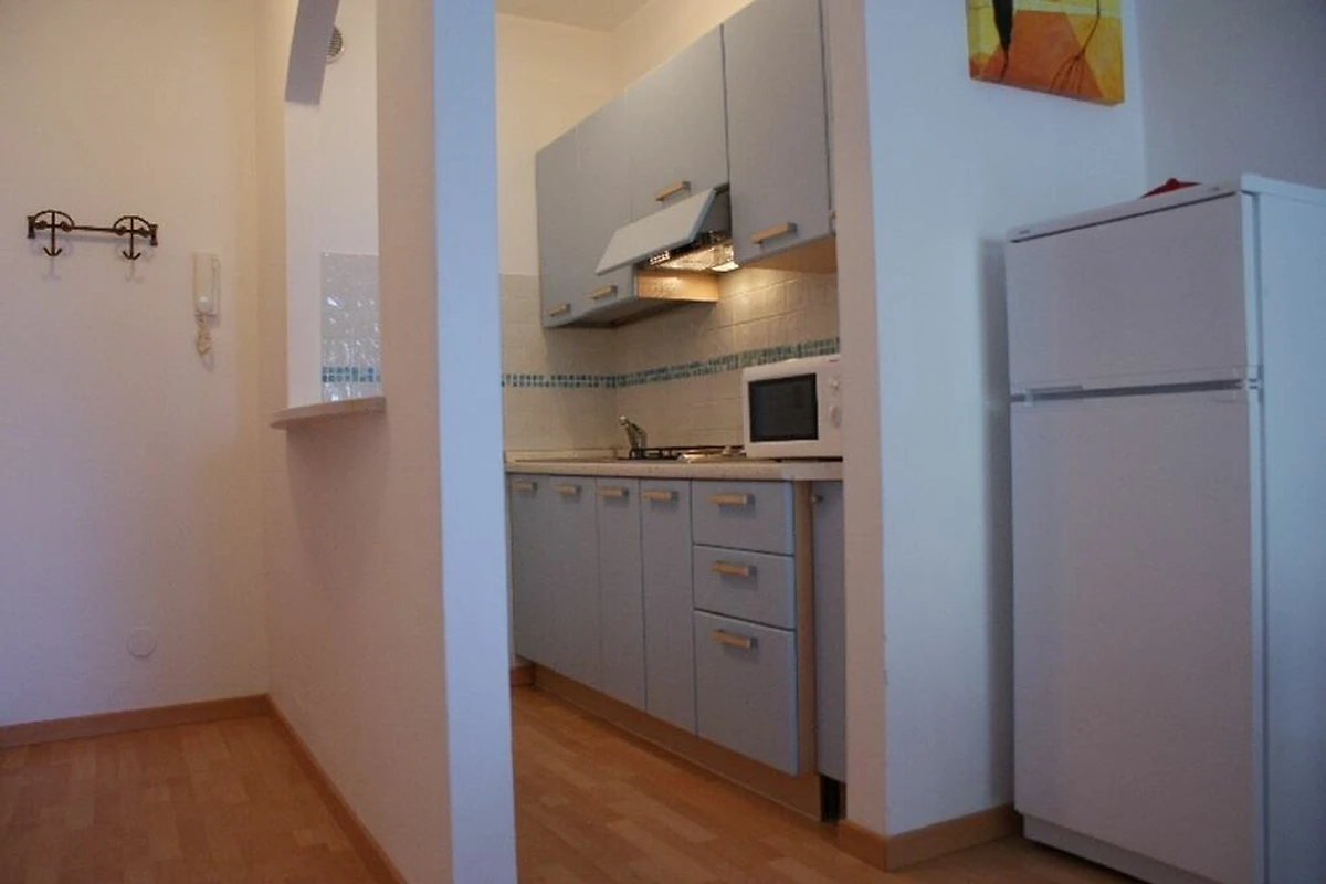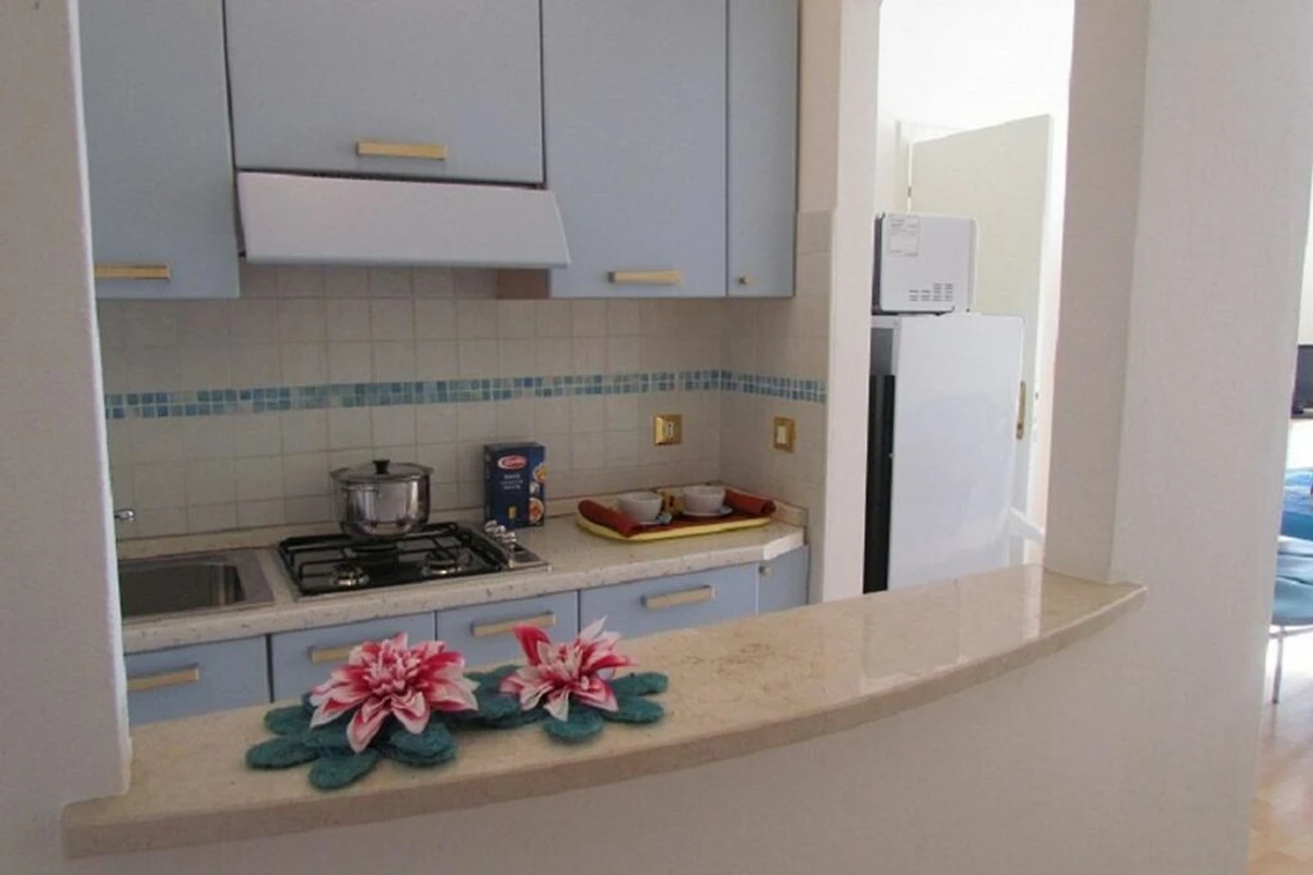 Die gut eingerichtete Küche verfügt über Herd, Geschirr, Besteck, Töpfe, Mikrowelle, Wasserkocher, Filterkaffeemaschine und Kühlschrank mit Eisfach. Wer nicht selbst kochen möchte, kann eines der vielen Restaurants in Fussnähe besuchen und sich von der guten italienischen Küche verwöhnen lassen.