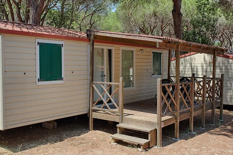 Die Unterkunft befindet sich im Feriendorf Le Marze welches direkt an der Küste von Marina di Grosseto liegt. Das Feriendorf erstreckt sich auf einer über 200'000 Quadratmeter grossen Grünfläche. Die Mobilehomes befinden sich alle im Halbschatten des grünen und prächtigen Pinienwaldes. Das Feriendorf verfügt über alle Annehmlichkeiten die man für einen perfekten Familienurlaub braucht. So stehen den Gästen ein Restaurant/Pizzeria, ein Minimarket, eine Bar, ein Pool, Animation und Miniclub, ein Hundepark, Sportmöglichkeiten, ein Bancomat, ein Spielplatz, Hüpfburgen und vieles mehr zur Verfügung. Der flachabfallende Privatstrand ist direkt vom Feriendorf aus erreichbar und ist somit ideal für Familien mit kleinen Kindern. Der gut eingerichtete Strand verfügt über eine Bar, Liegestühle und Sonnenschirme welche gemietet werden können aber auch viel Platz für Gäste die gerne am freien, flachabfallenden Sandstrand verweilen möchten. Während der Hauptsaison wird im Feriendorf Marze ein tolles Animationsprogramm mit Spielen, Aktivitäten und Darbietungen am Tag und am Abend geboten. Auch Sportliebhaber kommen hier auf Ihre Kosten: Volleyballplätze, Ping Pong, ein grosses Schwimmbad, Reitmöglichkeiten und eine Surfschule in der Nähe. Ausserdem gibt es im Feriendorf einen professionellen Seil- und Kletterpark für Erwachsene und Kinder. Sie können auch direkt im Feriendorf ein Fahrrad mieten und damit die schönen Radwege erkunden. Diese verlaufen durch den grünen Pinienwald und verbinden die Städte entlang der Küste.