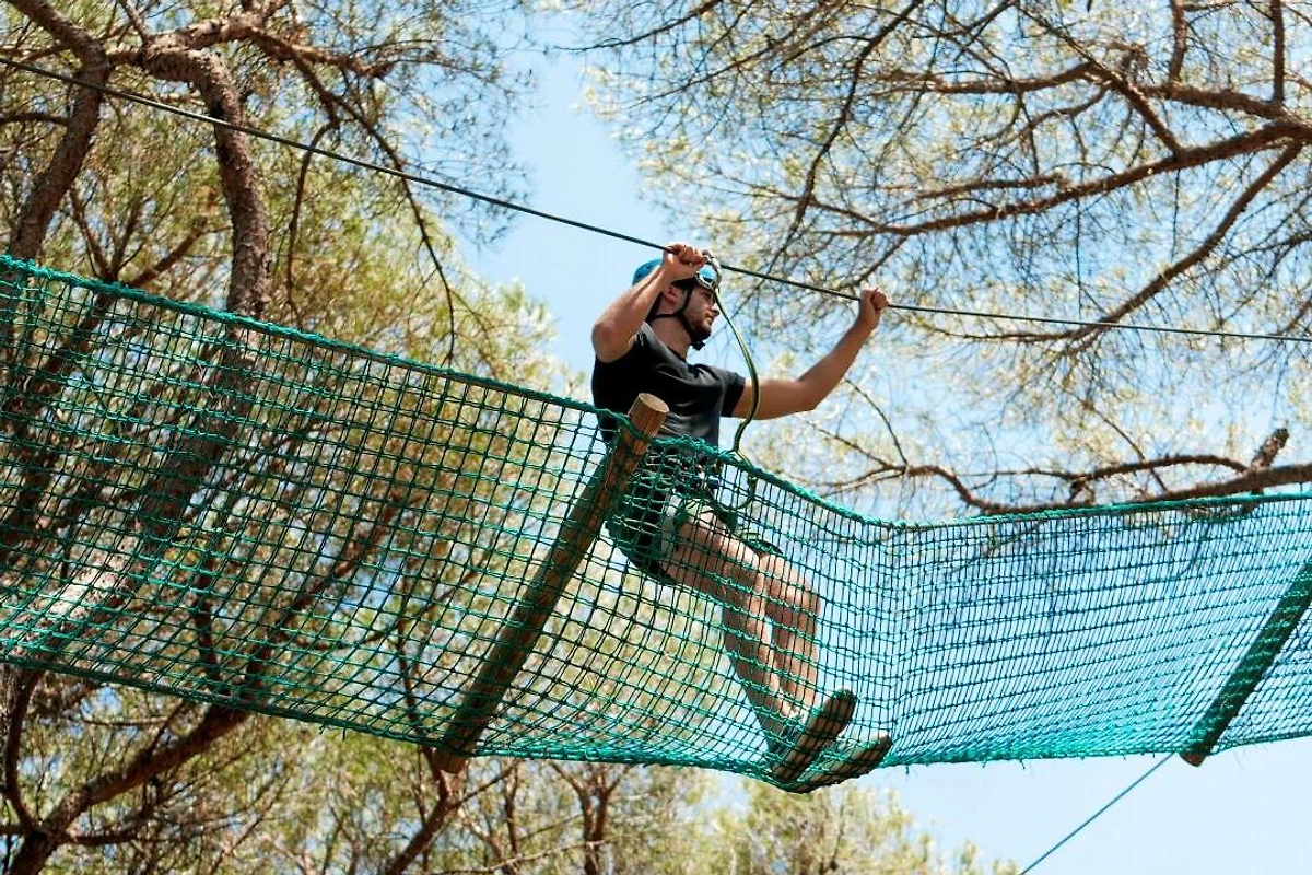 Auch Sportliebhaber kommen hier auf Ihre Kosten: Volleyballplätze, Ping Pong und ein Schwimmbad stehen kostenlos zur Verfügung. Am Strand gibt es eine Windsurfschule die schnell zu Fuss erreichbar ist. Sie bietet Unterricht und Ausrüstung für Anfänger und Fortgeschrittene sowie für Erwachsene und Kinder ab 8 Jahre an. Das sportliche Highlight ist aber der professionelle Kletter- und Seilpark des Feriendorfes, welcher für Erwachsene und Kinder geeignet ist. Ausserdem hat es einen Fahrradverleih um ausgiebige Fahrradtouren durch den bezaubernden Pinienwald zu unternehmen.