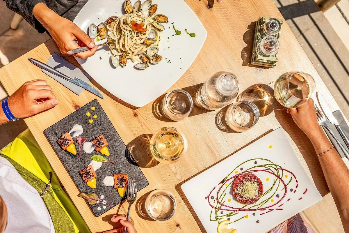 Das Feriendorf verfügt über ein Restaurant, Pizzeria und eine Bar. Es besteht die Möglichkeit der Halb- oder Vollpension im Restaurant des Feriendorfes.