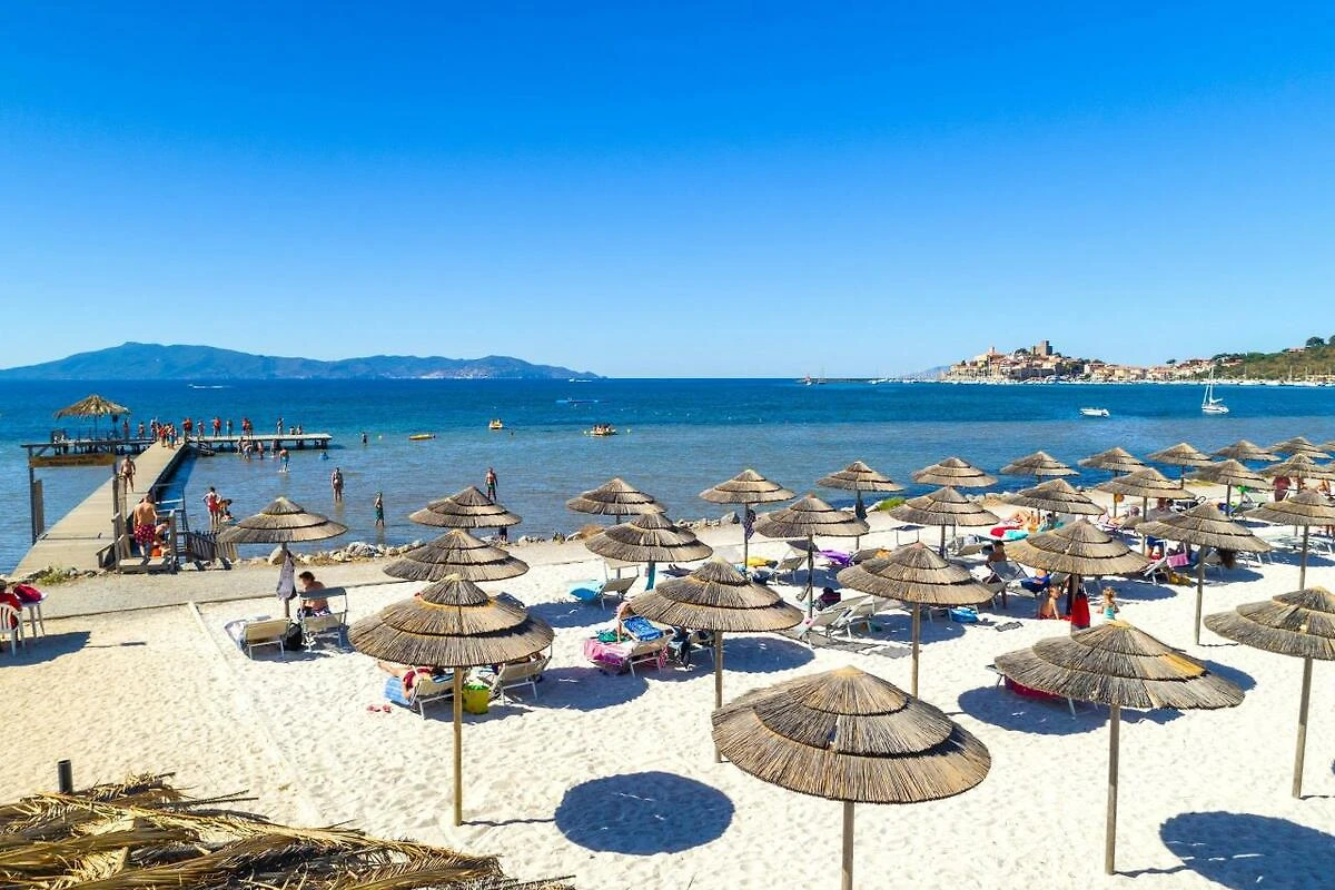 Der nächste Strand heisst "Parco Beach", nur 500 Meter entfernt. Dieser Strand eignet sich sehr gut zum Sonnenbaden aber auch für viele Wassersportarten (Surfen, Pedalo, Tauchen, etc.) Am privaten gut ausgestatteten breiten Sandstrand (ca. 5 Autominuten, 1x stündlich fährt ein Shuttelbus vom Feriendorf aus entfernt), wo auch Pedalos und Kanus in der Hochsaison kostenlos genutzt werden können. Parkplatz, Restaurant und schöner Spielplatz vorhanden. Das ruhige saubere Gewässer ist ideal für Kinder. Während den Monaten Juli und August steht zudem ein Shuttle ab Feriendorf zur Verfügung welche die Feriengäste an die schönen Felsklippen von Talamone bringt (nur 1km entfernt). Idealer Ort für alle die Tauchen, Snorkeln oder Klippensprünge liegen.