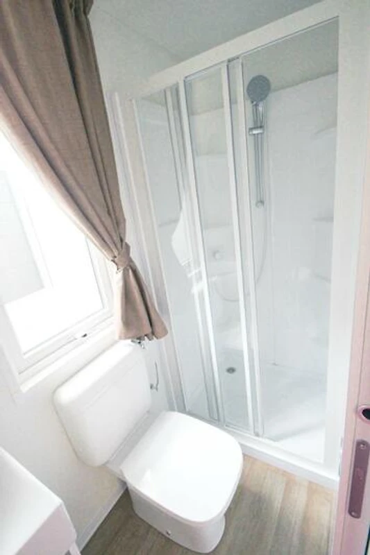 Die Unterkunft Happy Superior ist modern und hübsch eingerichtet. Es bietet Platz für bis zu 7 Personen. Das Mobilhome besteht aus einem Elternschlafzimmer mit Doppelbett, sowie zwei Kinderzimmern mit je zwei Einzelbetten. Eine weitere Schlafgelegenheit ist im Wohnzimmer. An allen Schlafzimmerfenstern befinden sich Moskitonetze. Die gut eingerichtete Küche befindet sich im Wohnbereich und verfügt über 4-Flammen-Gasherd, Geschirr, Besteck und Kochtöpfe sowie Kühlschrank mit Eisfach. Die beiden Badezimmer verfügen über eine Dusche, sowie Waschbecken und WC. Die überdachte Holzterrasse mit Tisch, Stühlen, zwei Liegen/Liegestühlen und einem Hängesessel lädt zum gemütlichen Entspannen ein, während die Kinder sich auf dem Spielplatz oder am Pool austoben können. Weiter stehen Klimaanlage, Reisebett und Hochstuhl auf Anfrage zur Verfügung. Eine elektrische Grillplatte ist vorhanden. Auf Wunsch kann vor Ort auch Halb- oder Vollpension dazu gebucht werden. Hinweis Wenn Sie mehr als eine Unterkunft benötigen, ist dies bei uns in der Regel möglich, da wir über mehrere Objekte des gleichen Haustyps verfügen.