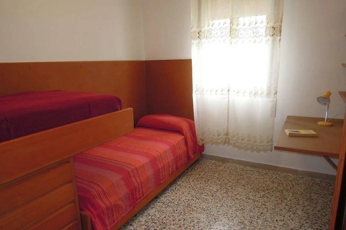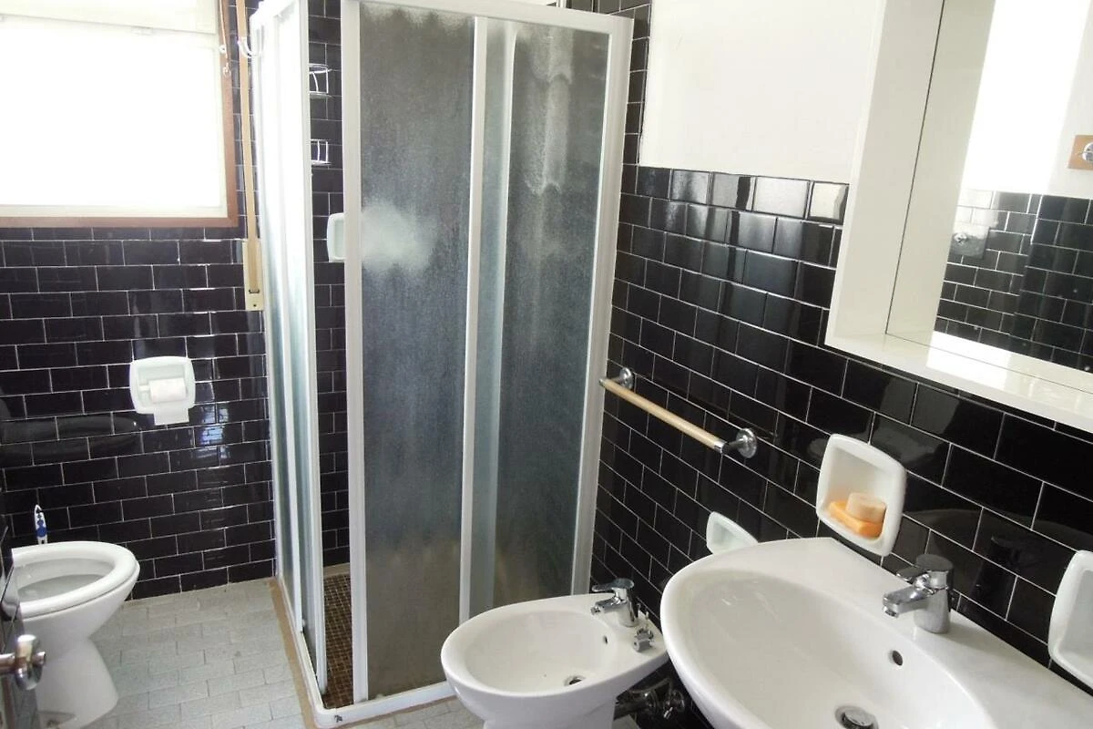 Die einfache und zweckmässige Vierzimmer-Wohnung Tipo D* bietet Platz für max. 8 Personen (davon idealerweise 2 Kinder bis max. 12 Jahre). Die Unterkunft besteht aus einem Schlafzimmer mit Doppelbett sowie zwei Schlafzimmern mit jeweils einem Stockbett. Im Wohnbereich bietet ein Bettsofa zwei weitere Schlafplätze. Die Wohnung verfügt über eine gut eingerichtete Küche, die mit Geschirr, Besteck, Töpfen, einem Gasherd (mit 4 Flammen), einer Espressokanne, einem Wasserkocher, einem Backofen, sowie einem grossen Kühlschrank mit Eisfach ausgestattet ist. Das Badezimmer ist mit einer Dusche, einem Waschbecken, einem Bidet sowie einem WC ausgestattet. Der überdachte Sitzplatz mit Tisch und Stühlen und der eingezäunte Garten laden zum gemütlichen Entspannen bei einem Glas italienischen Wein ein. Grillen ist erlaubt. Fahrzeit ab italienischer Grenze ca. 4h. Hinweis: Wenn Sie mehr als eine Unterkunft benötigen, ist dies bei uns in der Regel möglich, da wir über mehrere Objekte des gleichen Haustyps verfügen.