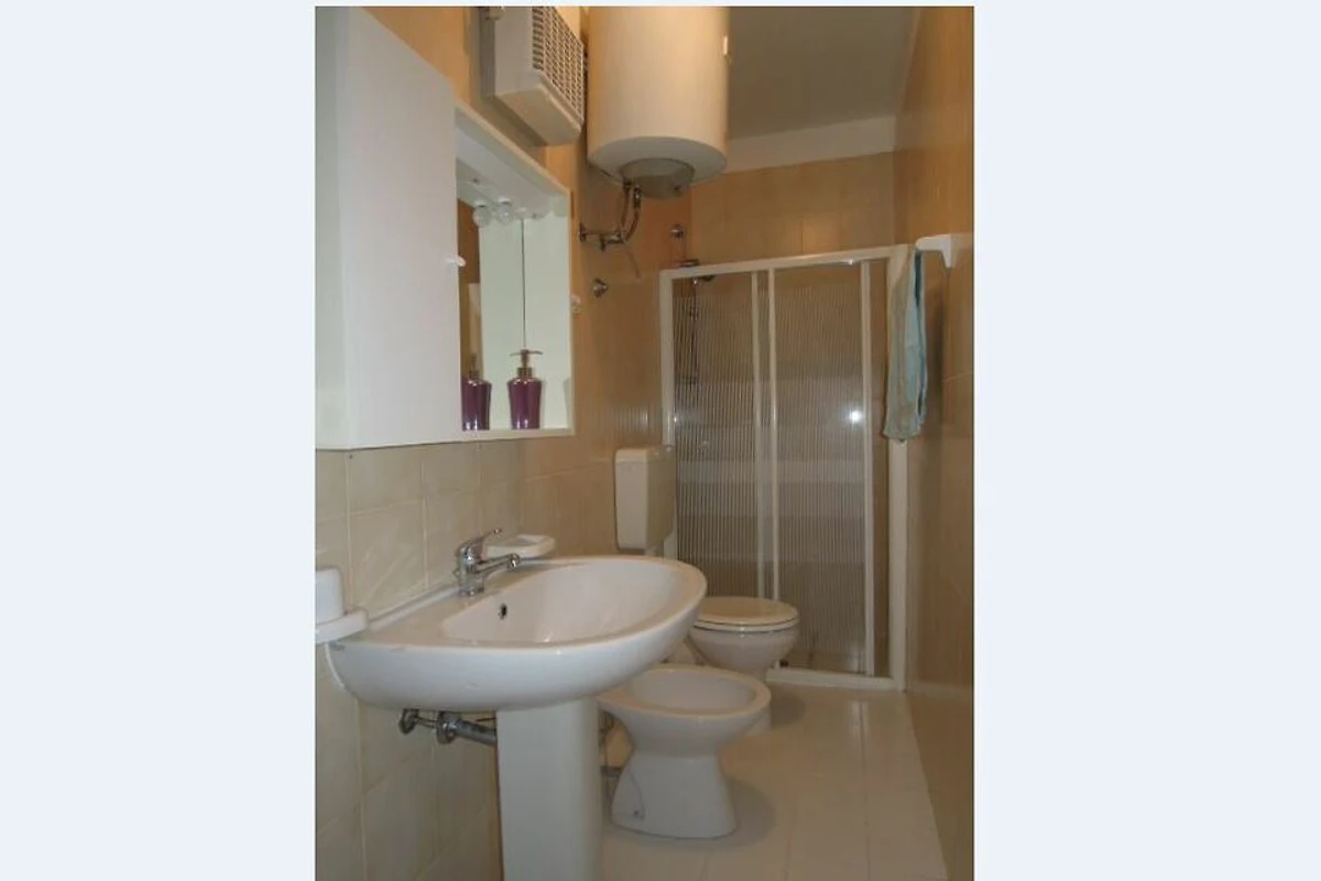 Die 3 Zimmer-Wohnung Tipo C* bietet Platz für max. 6 Personen und befindet sich in einer mehrstöckigen Residenz mit Lift. Die Wohnung verfügt über ein Schlafzimmer mit einem Doppelbett und einem Einzelbett. Das Kinderzimmer besteht aus einem Stockbett. Im Wohnbereich bietet ein Doppelbettsofa bei Bedarf zwei weitere Schlafplätze. Eine gut eingerichtete Kochnische mit Herd, Geschirr, Besteck, Töpfen, italienischer Espressokanne und Kühlschrank mit Eisfach befindet sich ebenfalls im Wohnbereich. Das Badezimmer ist mit einer Dusche, einem Waschbecken, einem Bidet, sowie einem WC ausgestattet. Die Wohnung verfügt über einen überdachten Balkon mit seitlichem Meerblick welcher mit Tisch und Stühlen zum Verweilen einlädt. Die Fahrzeit ab italienischer Grenze beträgt ca. 4h. Hinweis: Wenn Sie mehr als eine Unterkunft benötigen, ist dies bei uns in der Regel möglich, da wir über mehrere Objekte des gleichen Haustyps verfügen.