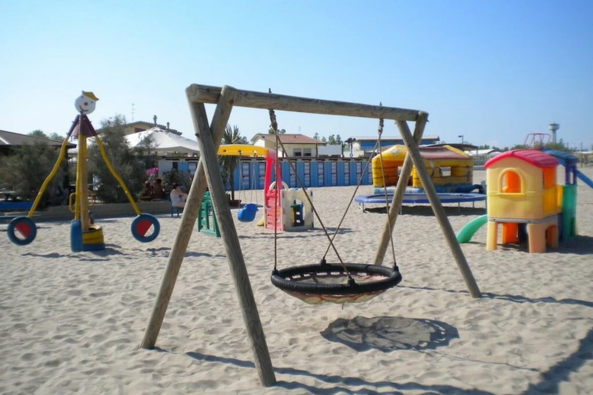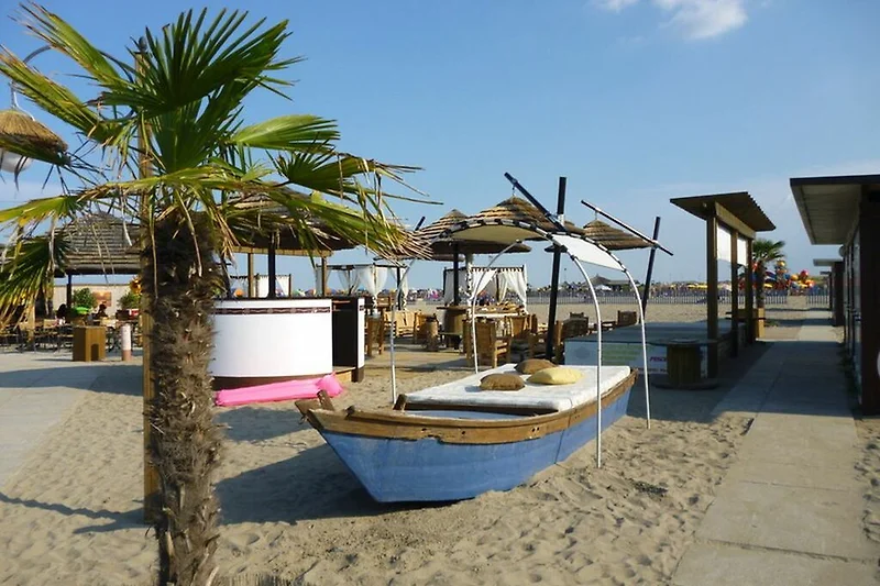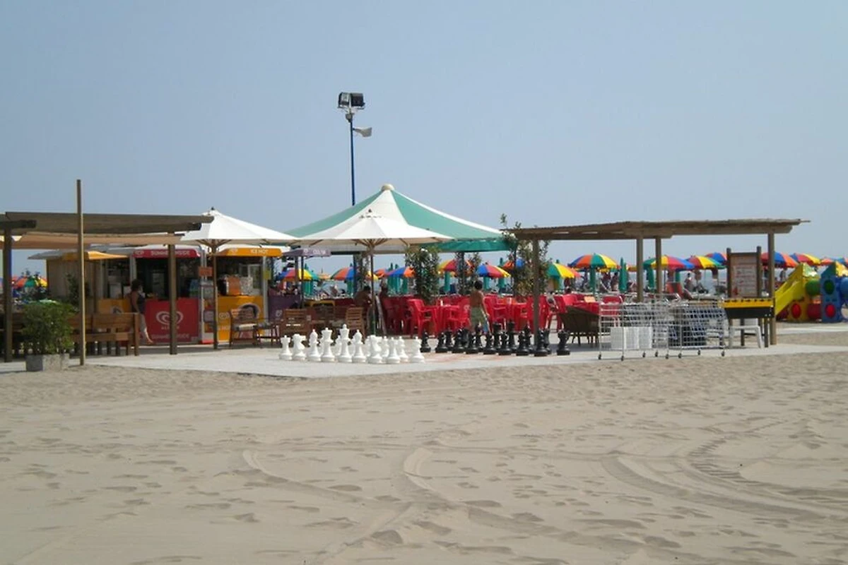 Der wunderschöne und breite Sandstrand kann in nur wenigen Minuten bequem zu Fuss erreicht werden. Dort besteht die Möglichkeit Liegen und Sonnenschirme zu mieten und gegen einen minimalen Aufpreis von der ganzen Einrichtung mit Pool, Spielplatz, Bar und Sportmöglichkeiten zu profitieren. Falls Sie lieber an einem freien Strand ihren eigenen Sonnenschirm aufstellen möchten ist dies kein Problem! Gleich nebenan gibt es einen grossen freien Strand wo dies möglich ist. Das Meer ist ideal für kleine Kinder geeignet, da es flachabfallend ist und somit auch das Spielen im seichten Wasser ermöglicht. Zudem sorgen Bademeister täglich für ihre Sicherheit.