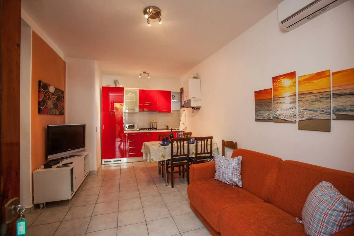 Die freundliche Ferienwohnung Trilo AGITA bietet Platz für max. 5 Personen (davon mind. 1 Kind bis max. 12 Jahre) und befindet sich im 1. Stock. Ein Schlafzimmer mit Ehebett und ein weiteres Zimmer mit Ehebett stehen den Gästen zur Verfügung. Das Wohnzimmer ist mit einem Sofa, welches bei Bedarf ausgezogen werden kann und somit einer weiteren Person Platz bietet. Im Wohnzimmer hat es auch einen SAT-TV und eine Essecke. Die gut ausgestattete Küche verfügt über einen Herd, Töpfe, Geschirr, Besteck, Mikrowelle und einen Kühlschrank mit Eisfach. Das Badezimmer ist mit einer Dusche, einem Bidet, einem WC und einem Waschbecken sowie einer Waschmaschine ausgestattet. Eine Klimaanlage kann dazu gebucht werden. Der überdachte Balkon mit Tisch und Stühlen lädt zum gemütlichen Entspannen oder auch zum Grillen ein (Grill muss selber mitgebracht werden). Falls Sie mit einem Kleinkind anreisen und ein Babybett benötigen, bitten wir Sie dies bei der Buchung zu reservieren. Fahrzeit ab italienischer Grenze ca. 3.5h. Hinweis: Wenn Sie mehr als eine Unterkunft benötigen, ist dies bei uns in der Regel möglich, da wir über mehrere Objekte des gleichen Haustyps verfügen.