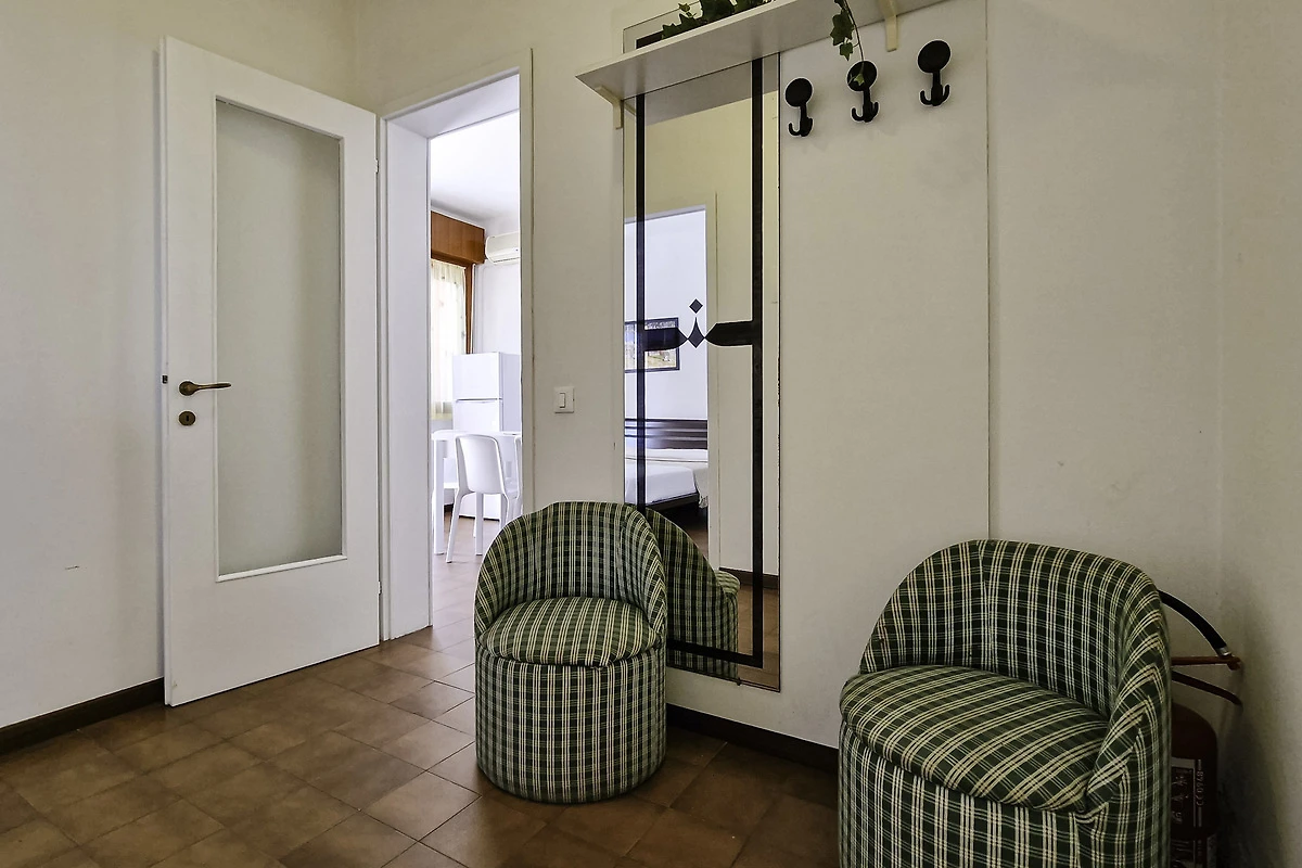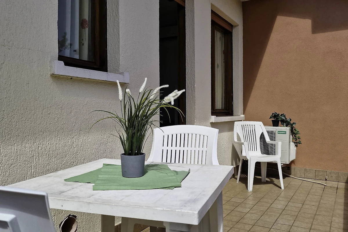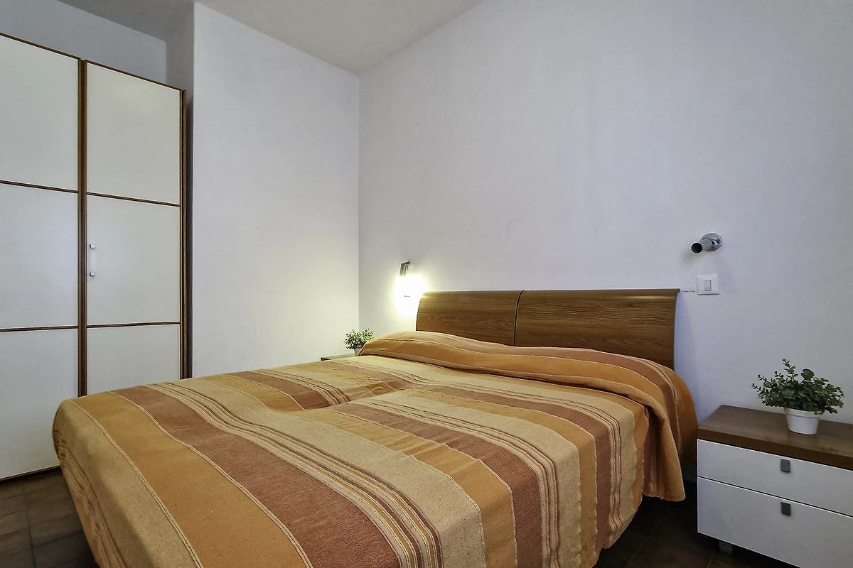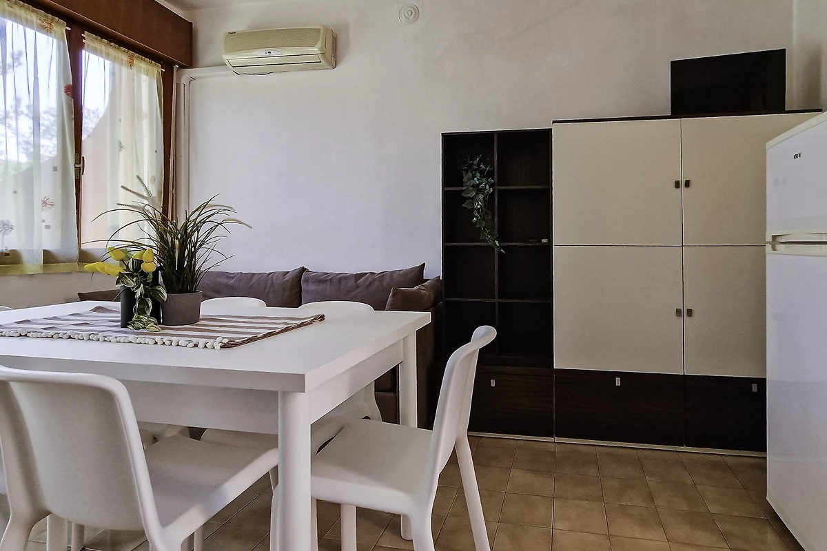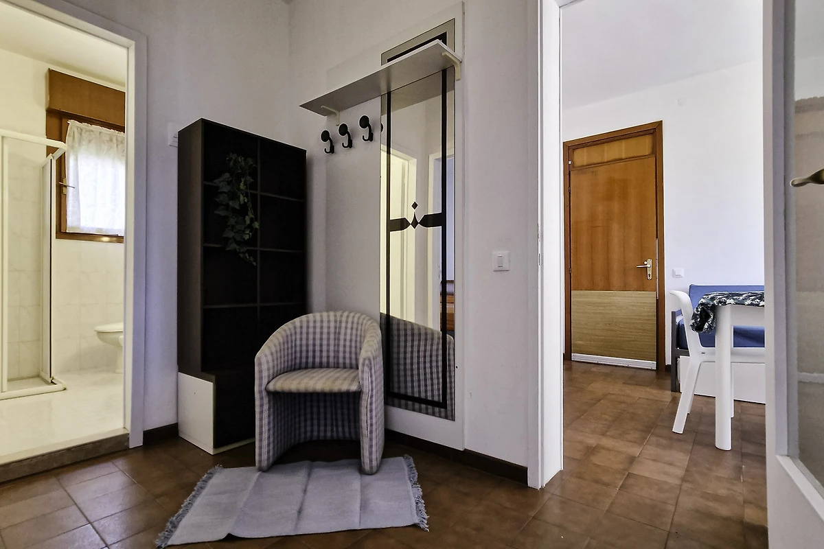 Die einfach und zweckmässige Dreizimmer-Wohnung Tipo C* befindet sich entweder im Erdgeschoss oder im ersten Stock eines Reihenferienhauses und bietet Platz für max. 6 Personen. Die Unterkunft besteht aus einem Schlafzimmer mit einem Doppelbett und einem Schlafzimmer mit zwei Einzelbetten. Zwei weitere Schlafplätze bietet das Doppelschlafsofa im Wohnzimmer. Im Wohnbereich befindet sich ausserdem die gut eingerichtete Küche mit Geschirr, Besteck, Töpfen, Espressokanne, einem Kühlschrank mit Eisfach und einem Gasherd. Eine Klimaanlage ist vorhanden. Das Badezimmer verfügt über eine Dusche, ein WC und ein Waschbecken. Die Terrasse mit Tisch, Stühlen und einem kleinen, von Hecken umzäunten Garten oder der mobilierte Balkon laden zum gemütlichen Entspannen ein, während sich die Kinder am Pool austoben können. Die Fahrzeit ab italienischer Grenze beträgt ca. 4h. Hinweis: Wenn Sie mehr als eine Unterkunft benötigen, ist dies bei uns in der Regel möglich, da wir über mehrere Objekte des gleichen Haustyps verfügen. Bitte nehmen Sie daher zur Kenntnis, dass die Inneneinrichtung daher leicht variieren kann.