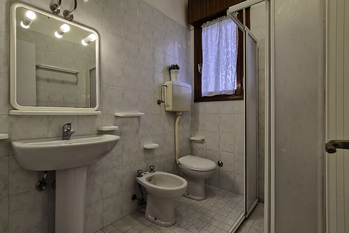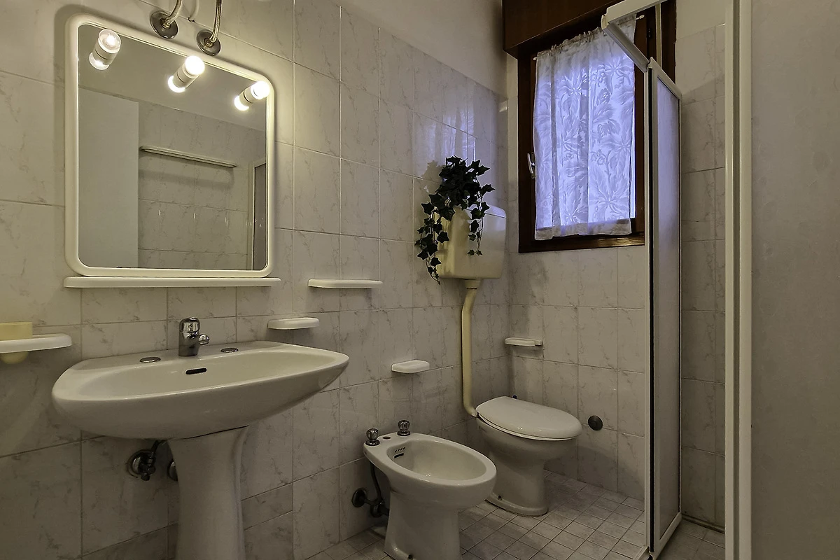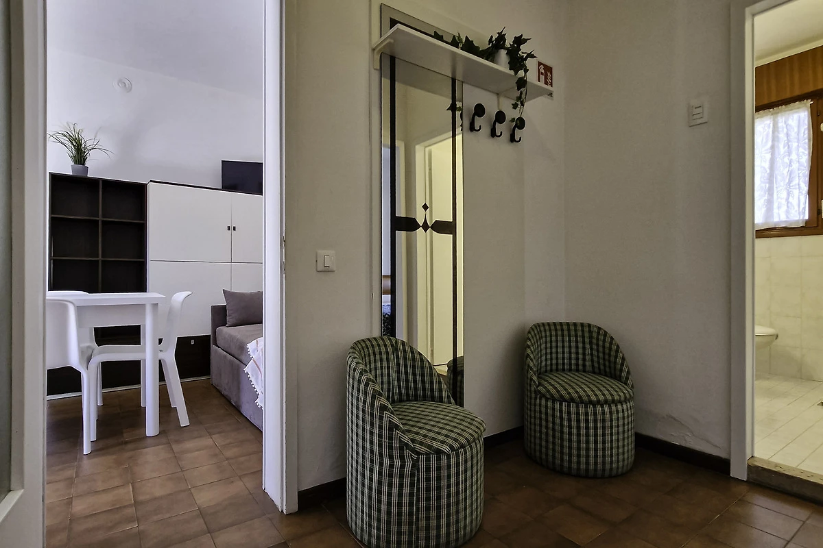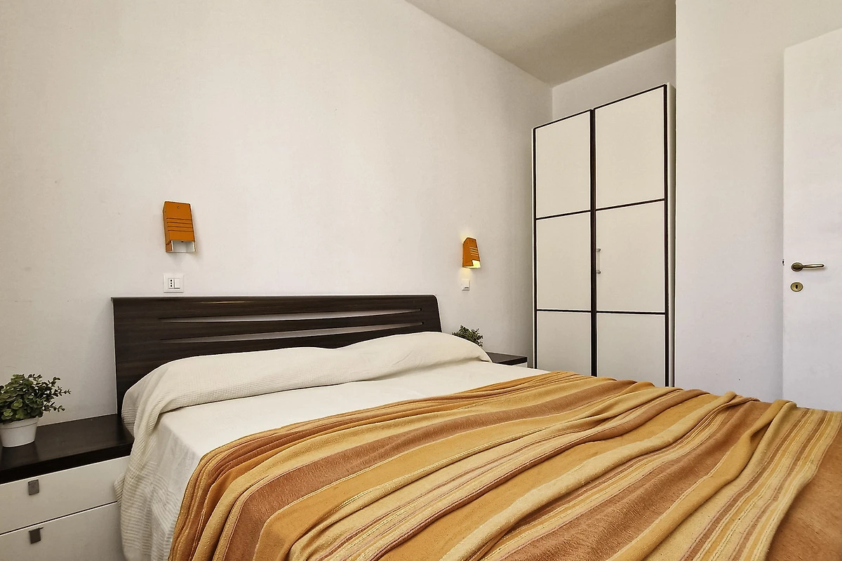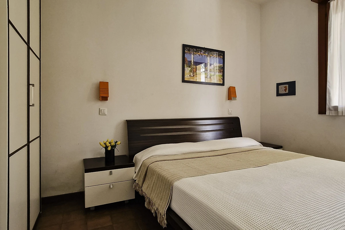 Die einfach und zweckmässige Dreizimmer-Wohnung Tipo C* befindet sich entweder im Erdgeschoss oder im ersten Stock eines Reihenferienhauses und bietet Platz für max. 6 Personen. Die Unterkunft besteht aus einem Schlafzimmer mit einem Doppelbett und einem Schlafzimmer mit zwei Einzelbetten. Zwei weitere Schlafplätze bietet das Doppelschlafsofa im Wohnzimmer. Im Wohnbereich befindet sich ausserdem die gut eingerichtete Küche mit Geschirr, Besteck, Töpfen, Espressokanne, einem Kühlschrank mit Eisfach und einem Gasherd. Eine Klimaanlage ist vorhanden. Das Badezimmer verfügt über eine Dusche, ein WC und ein Waschbecken. Die Terrasse mit Tisch, Stühlen und einem kleinen, von Hecken umzäunten Garten oder der mobilierte Balkon laden zum gemütlichen Entspannen ein, während sich die Kinder am Pool austoben können. Die Fahrzeit ab italienischer Grenze beträgt ca. 4h. Hinweis: Wenn Sie mehr als eine Unterkunft benötigen, ist dies bei uns in der Regel möglich, da wir über mehrere Objekte des gleichen Haustyps verfügen. Bitte nehmen Sie daher zur Kenntnis, dass die Inneneinrichtung daher leicht variieren kann.