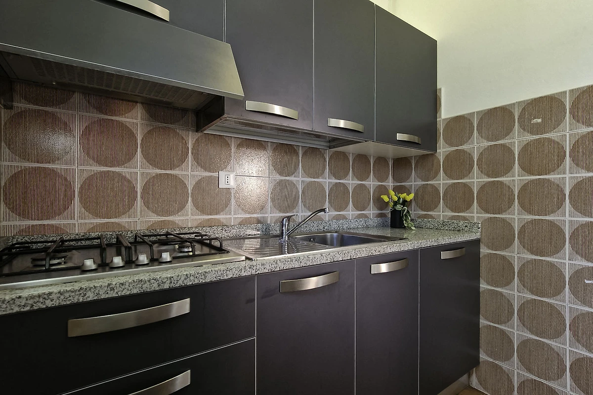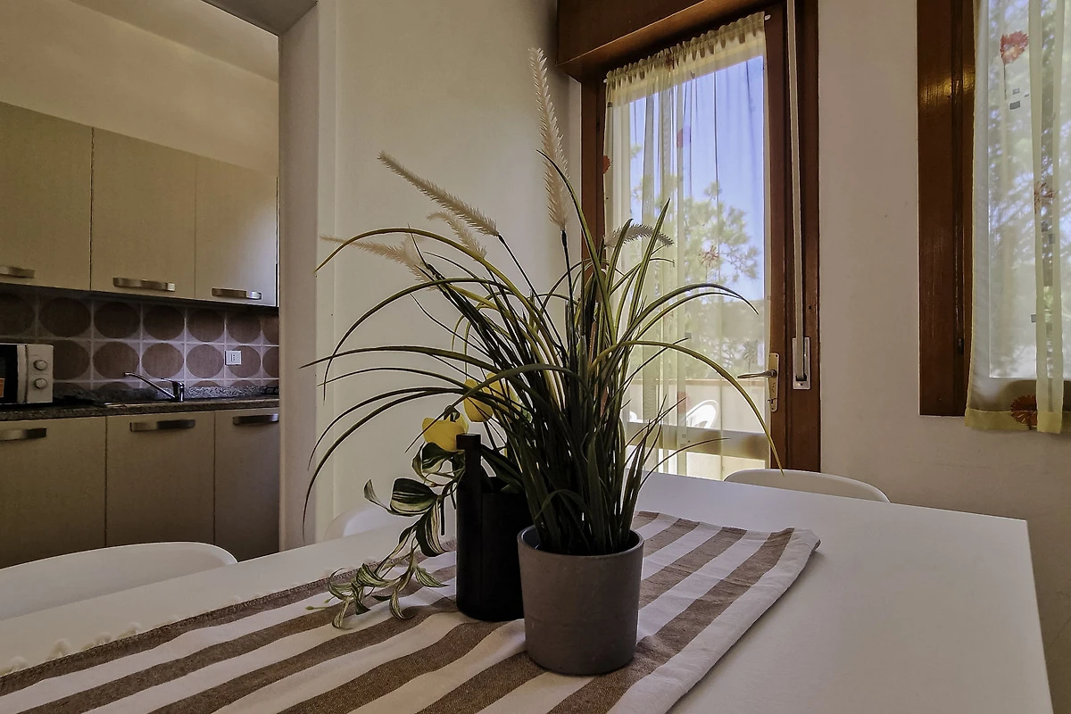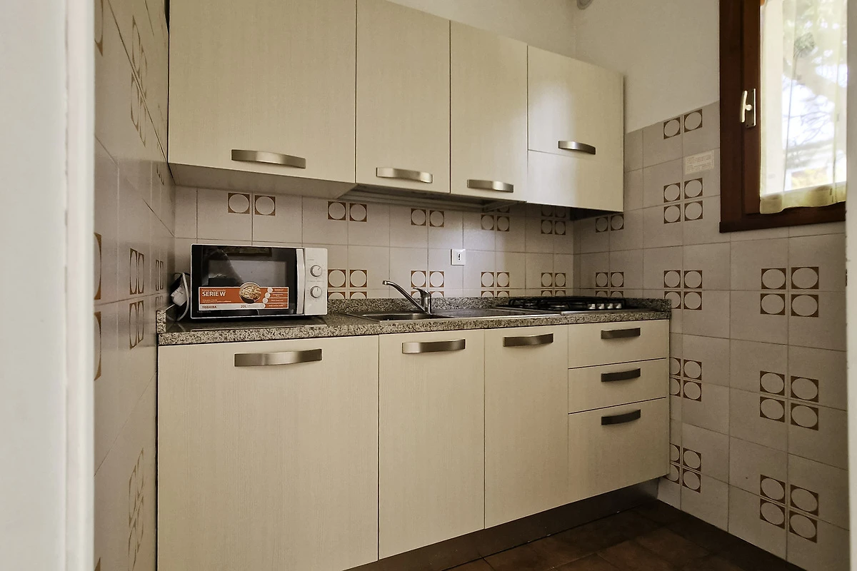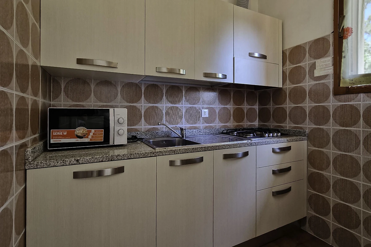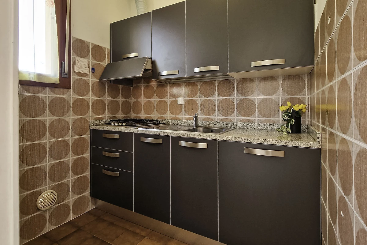 Die gut eingerichtete Küche verfügt über Herd, Backofen, Geschirr, Besteck, Töpfe, Mikrowelle und Kühlschrank mit Eisfach. Wer nicht selbst kochen möchte, kann eines der vielen Restaurants in Fussnähe besuchen und sich von der guten italienischen Küche verwöhnen lassen.